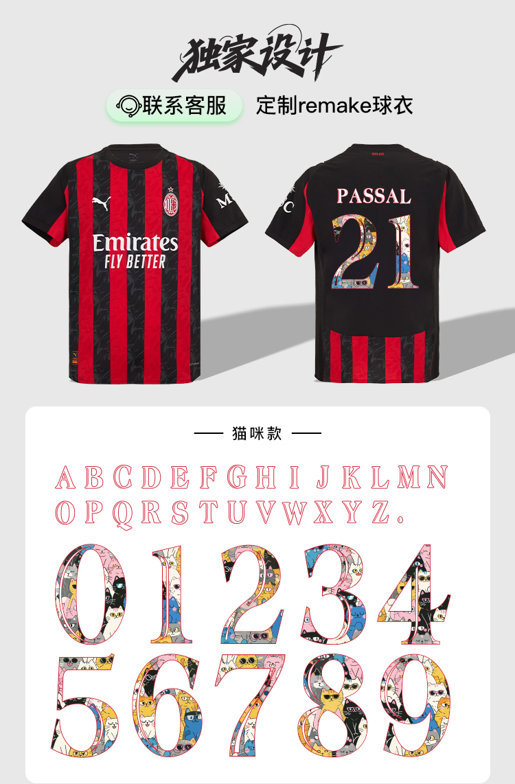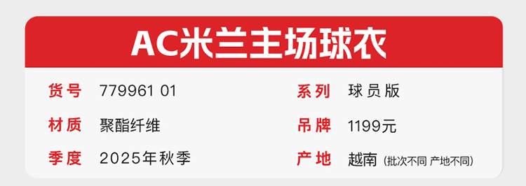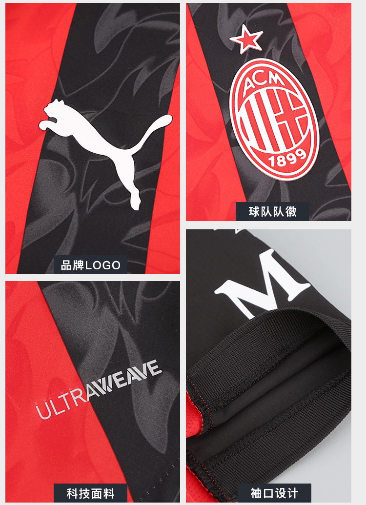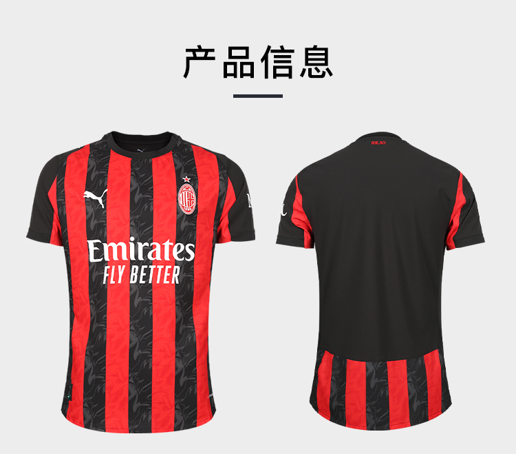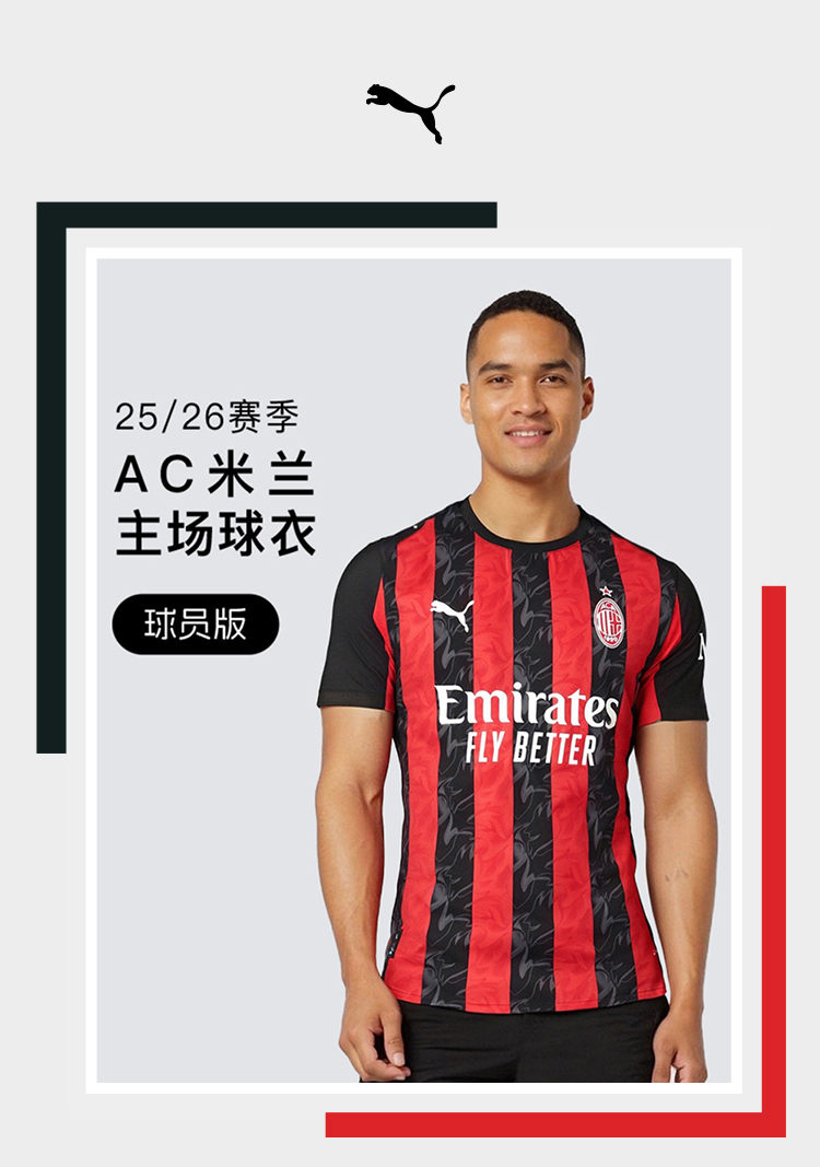 小李子PUMA彪马25-26赛季AC米兰主场球员版短袖比赛球衣779961 01