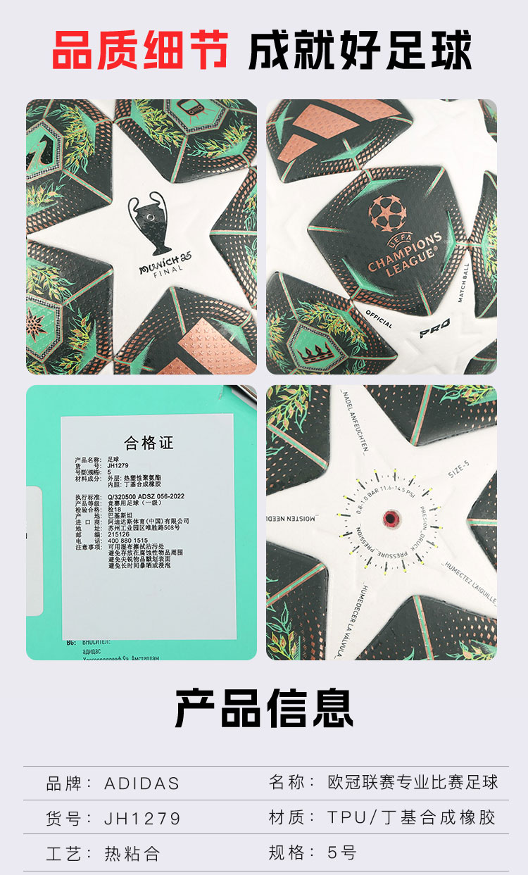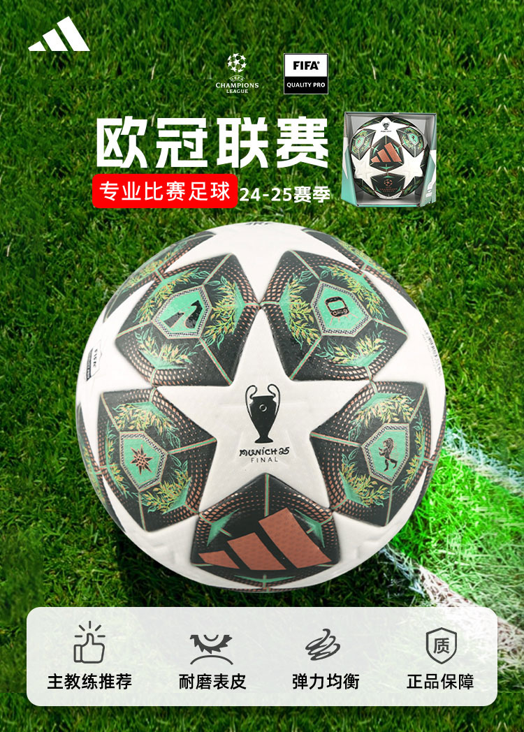 小李子阿迪达斯24-25赛季欧冠联赛淘汰赛热粘合A/Pro标足球JH1279