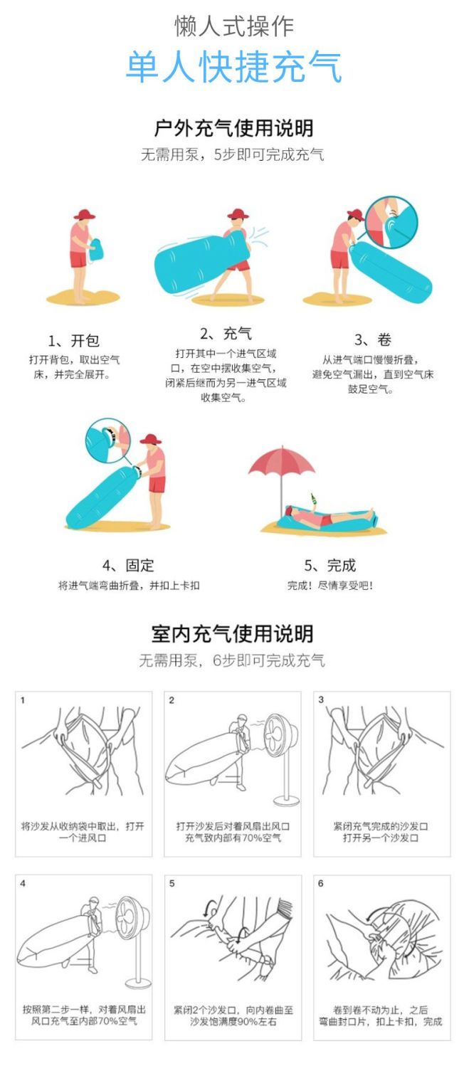 【跑起来就可以充气!】户外懒人充气沙发折叠便携式气垫床野餐露营网红床垫空气床免打气hwa10