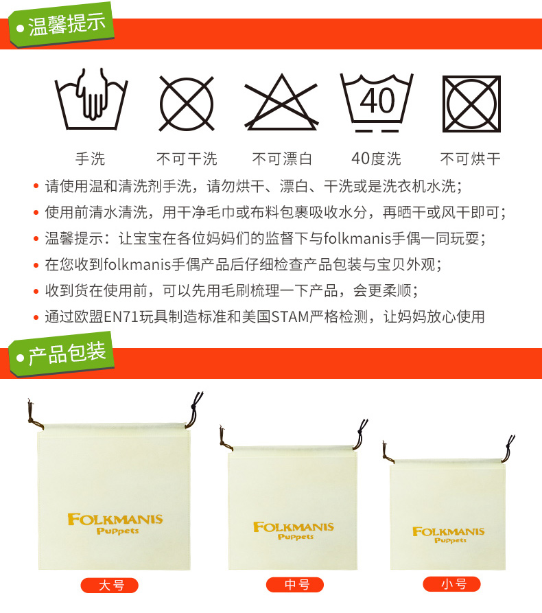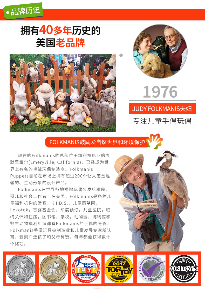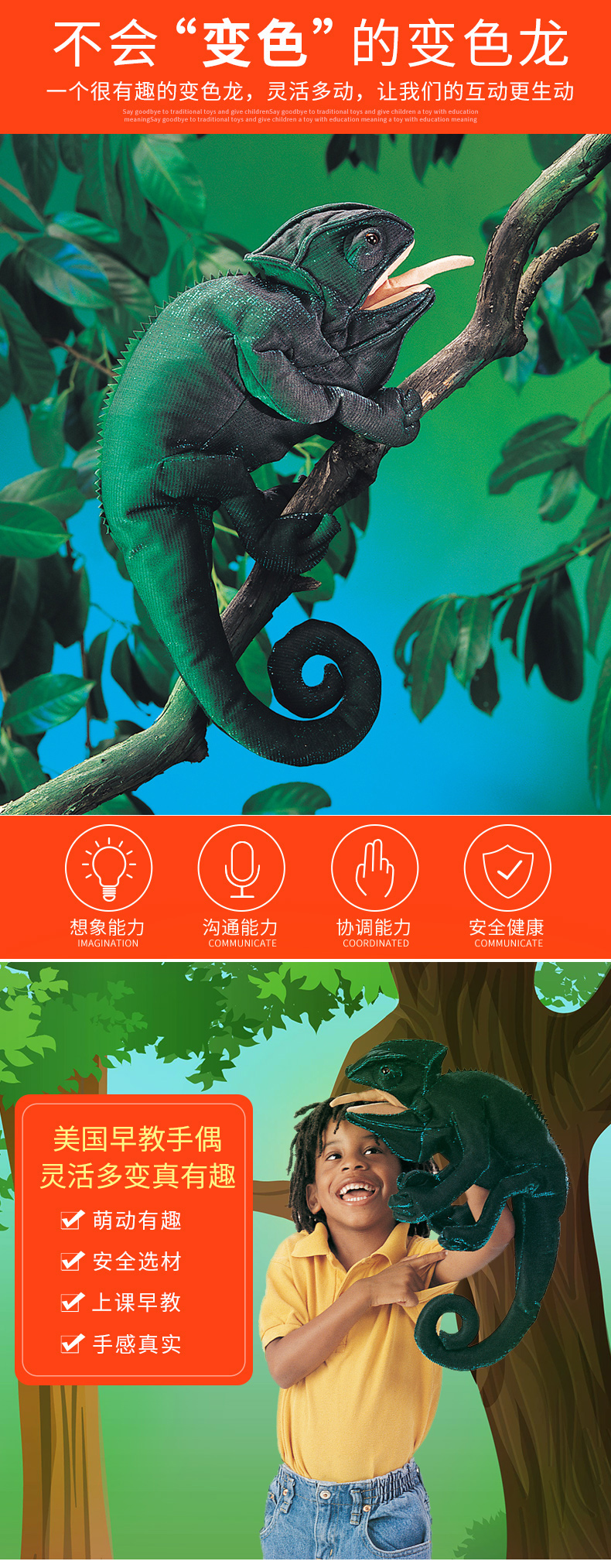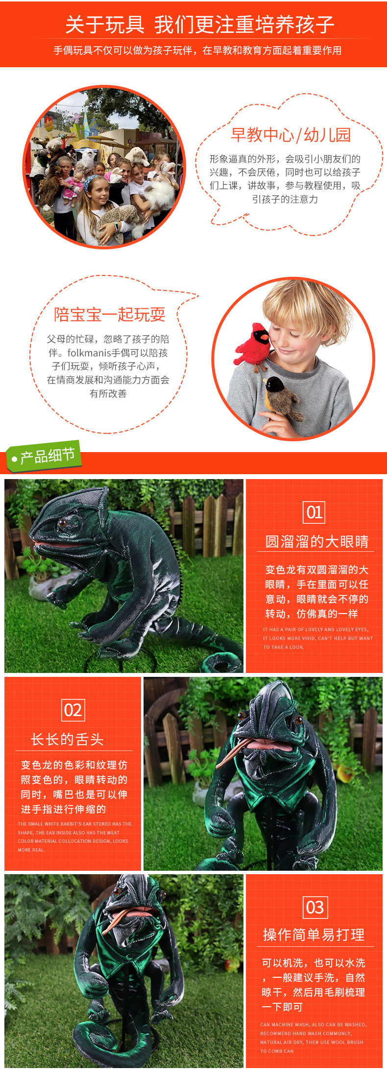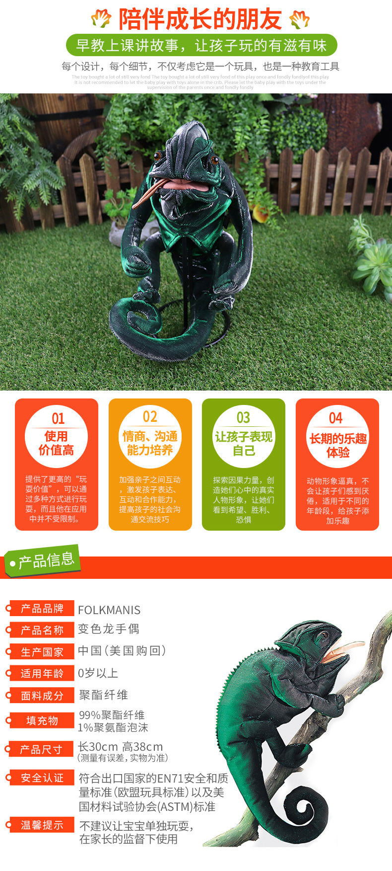Folkmanis Puppets变色龙玩具/2215玩偶毛绒玩具礼物