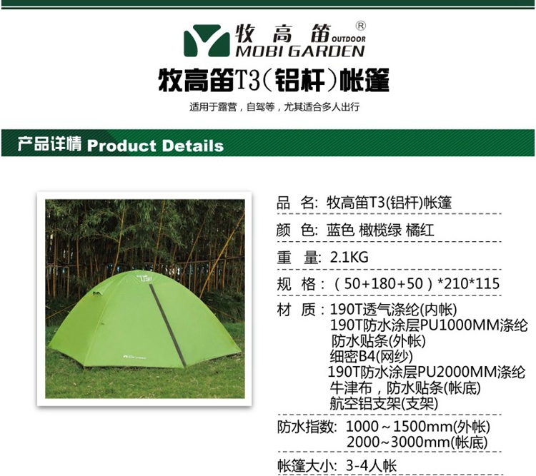 牧高笛帐篷/T3铝杆/NXZ1329001户外露营旅行装备