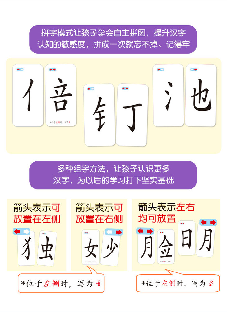 魔法汉字偏旁生字牌120张儿童拼偏旁部首组合识字卡片幼儿生字牌桌游认字亲子玩具
