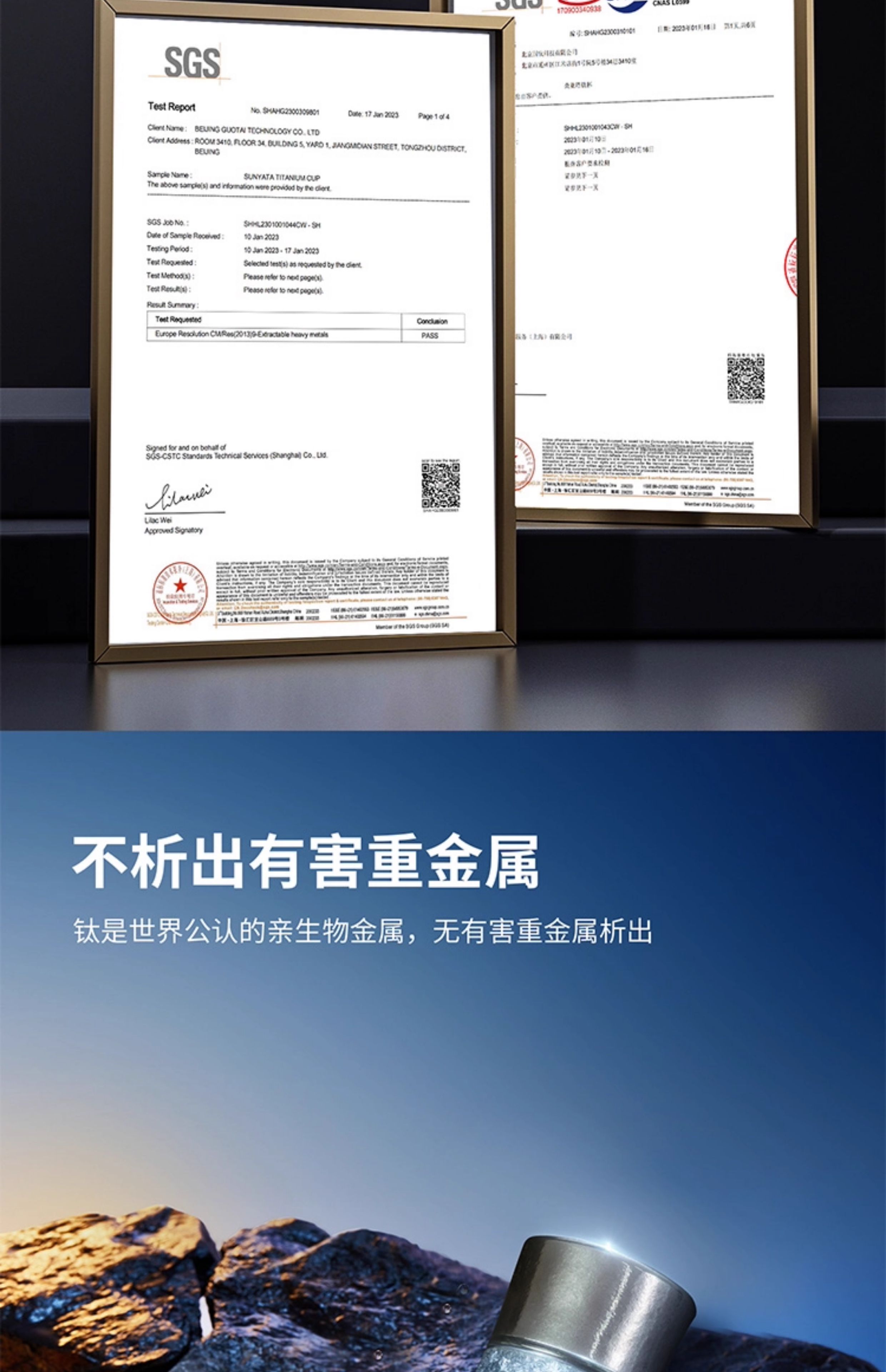 桑亚塔·睿 钛金属保温杯 健康纯钛抑菌保鲜养生定制好礼