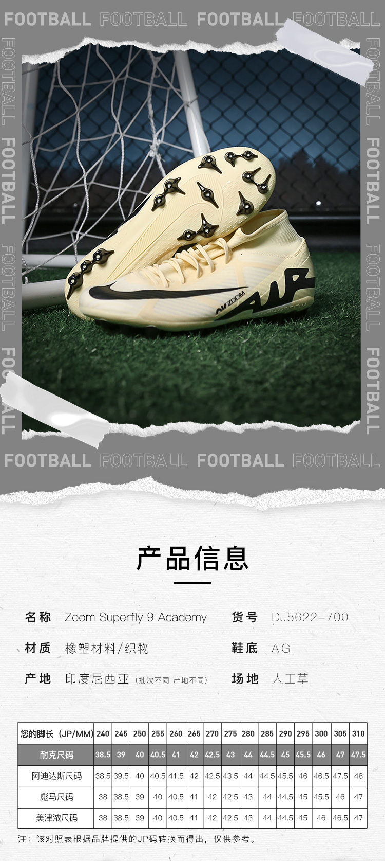 NIKE耐克刺客15中端高帮AG短钉成人足球鞋男DJ5622-700