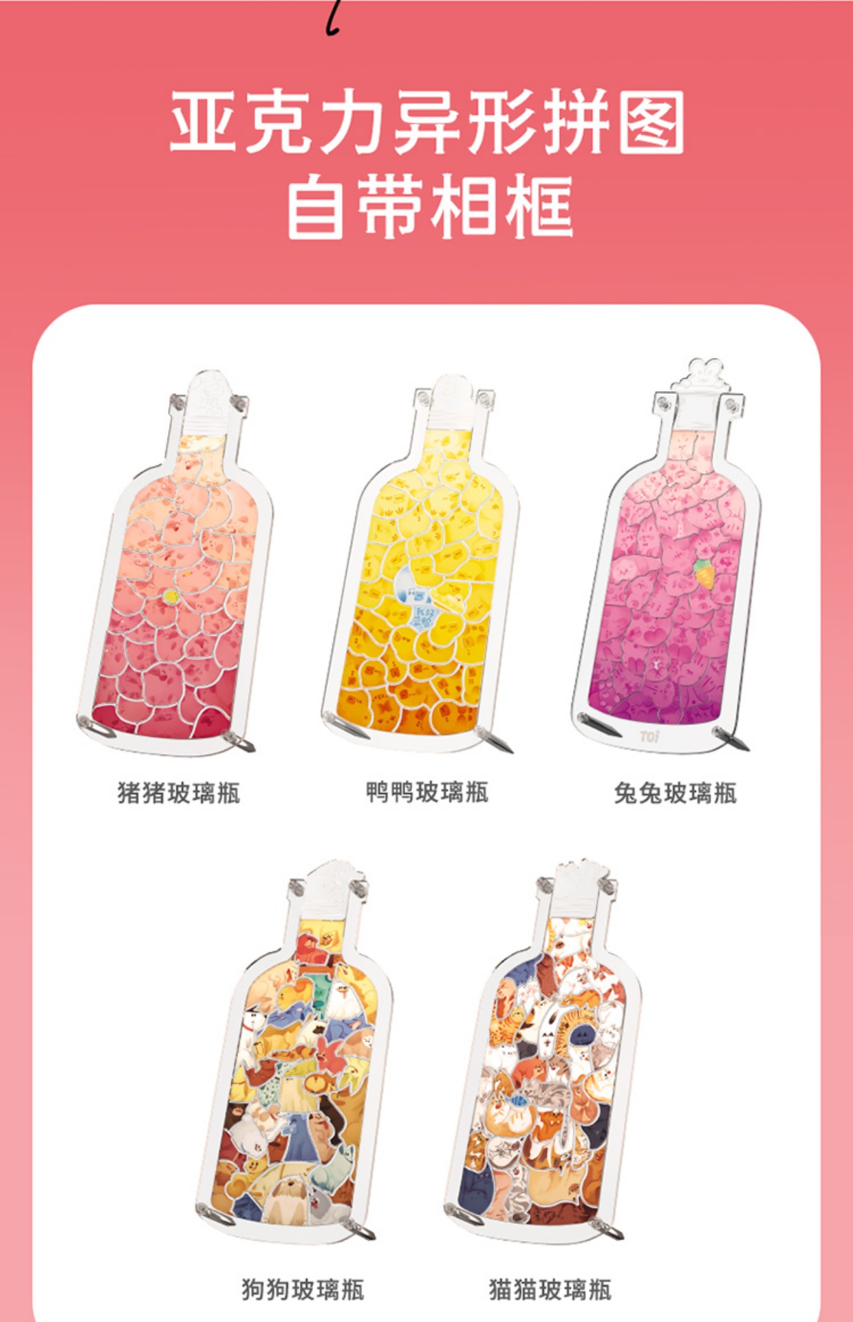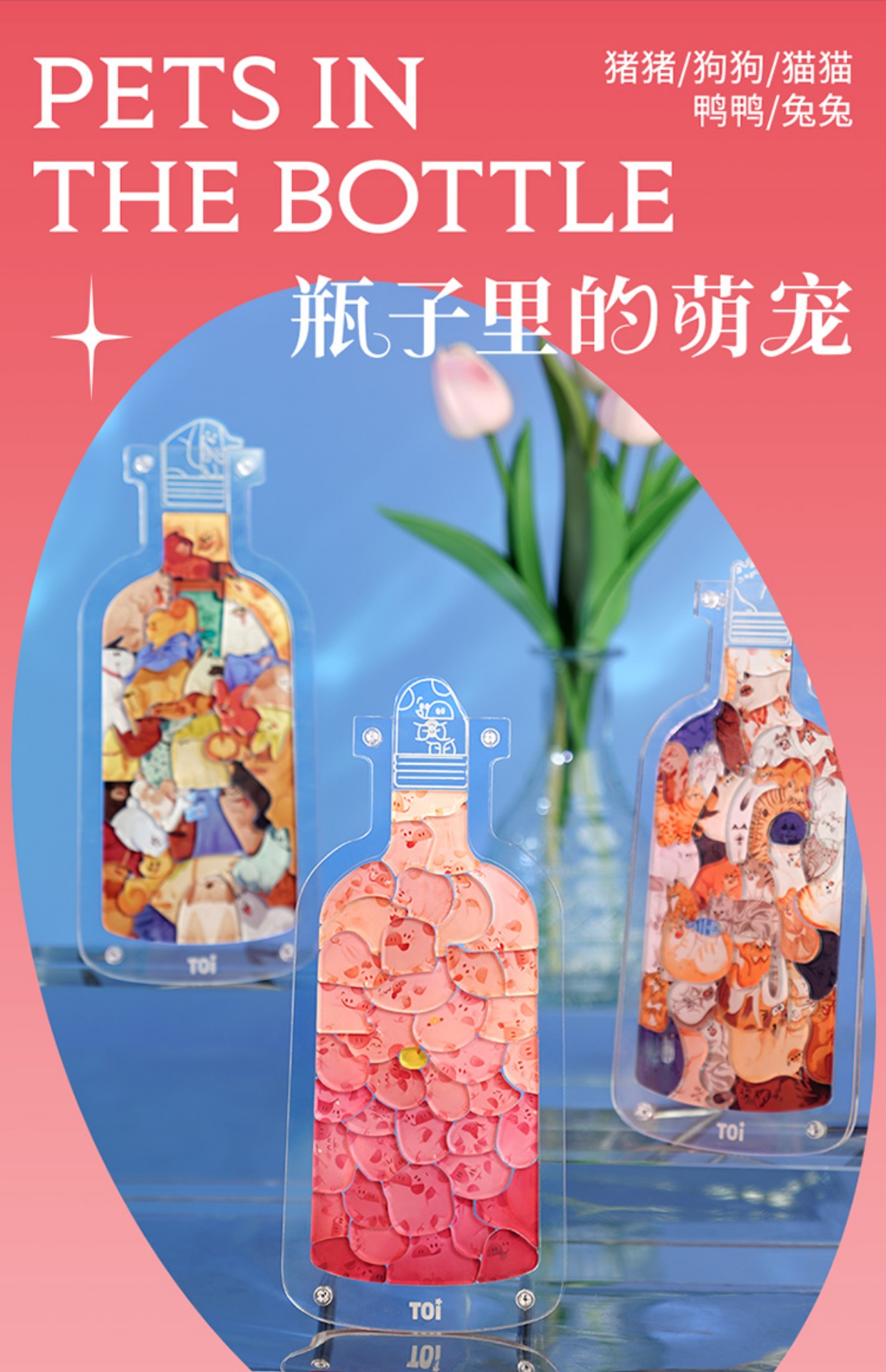 TOI图益亚克力瓶子里的萌宠猪猪狗狗猫猫立体创意拼图礼物网红猪