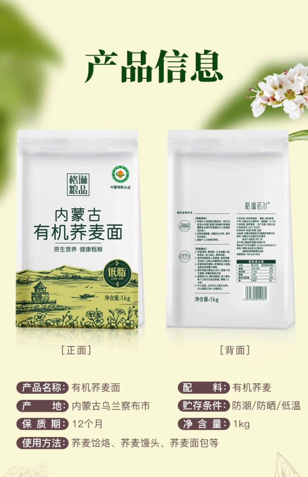 格琳粮品有机荞麦面粉1kg