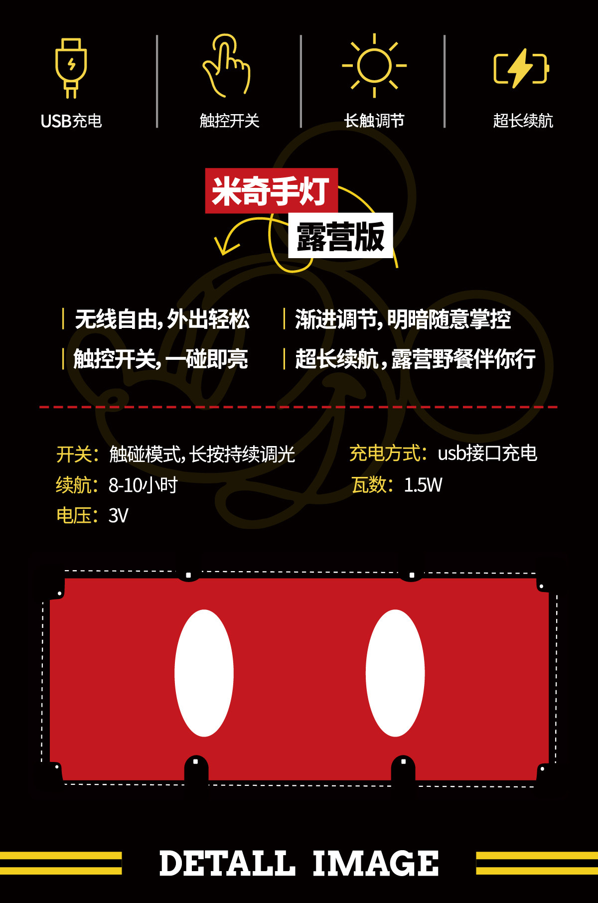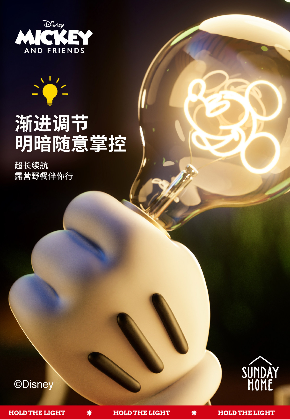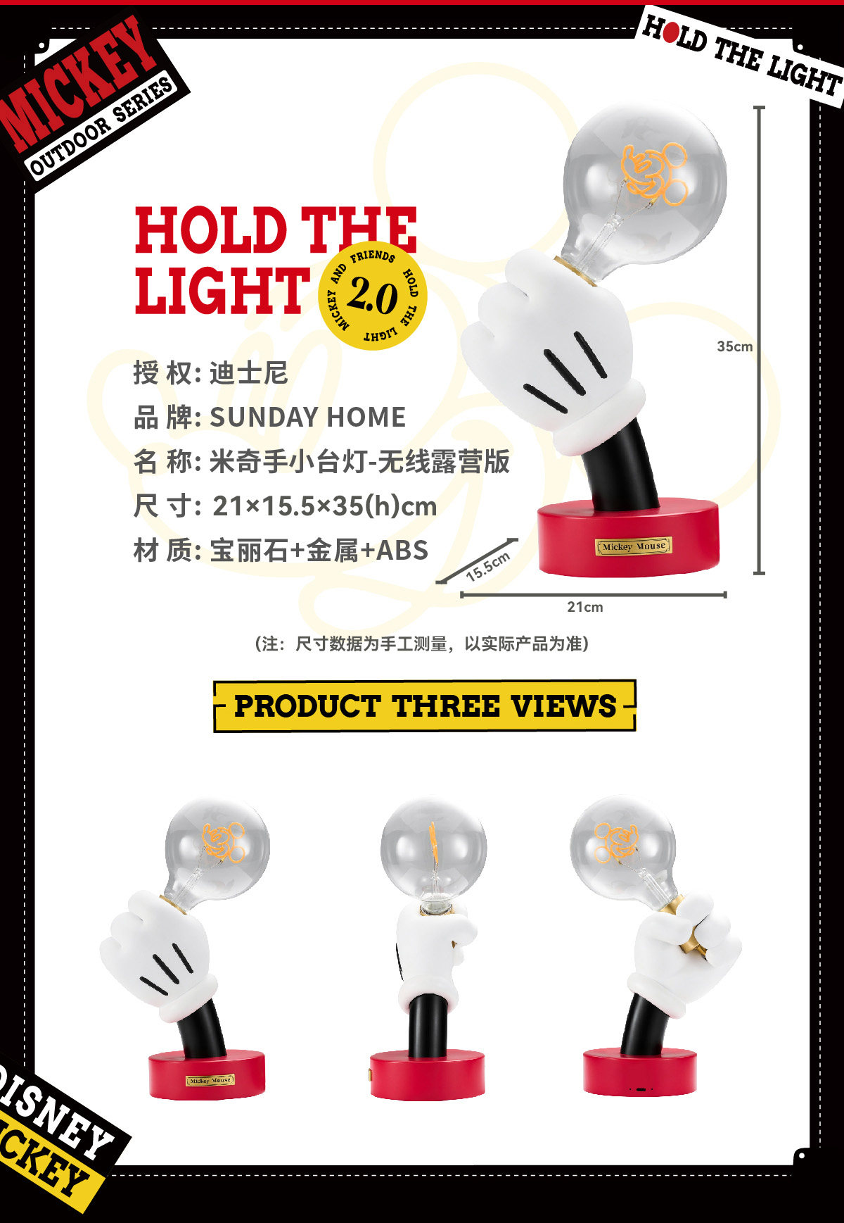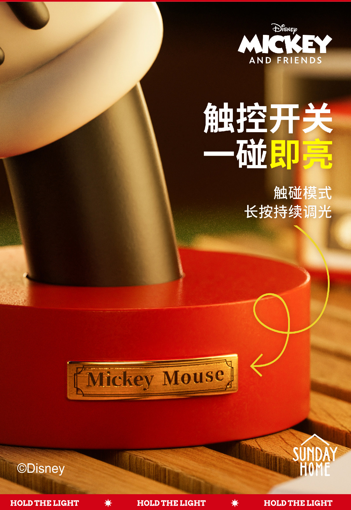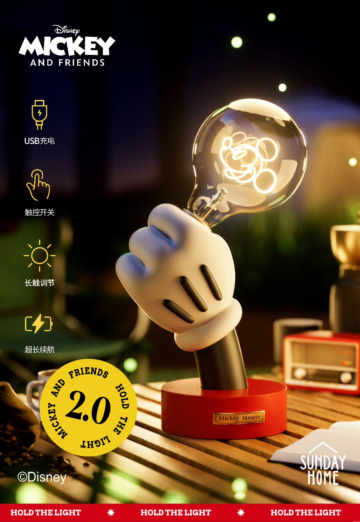 Sunday home 米奇手小台灯-无线版 迪士尼米奇经典大手灯台灯家居桌面装饰创意氛围摆件