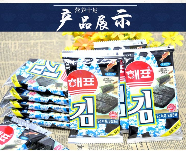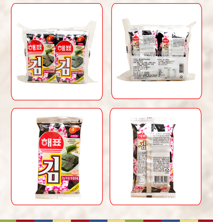 进口海牌 鱿鱼味 番茄味 芥末味海苔 2g×8包