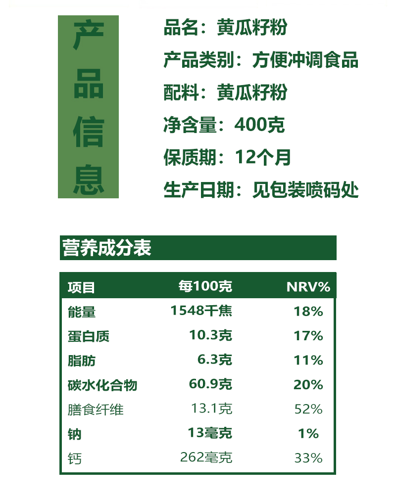 子荷堂黄瓜籽粉 400克/罐x4