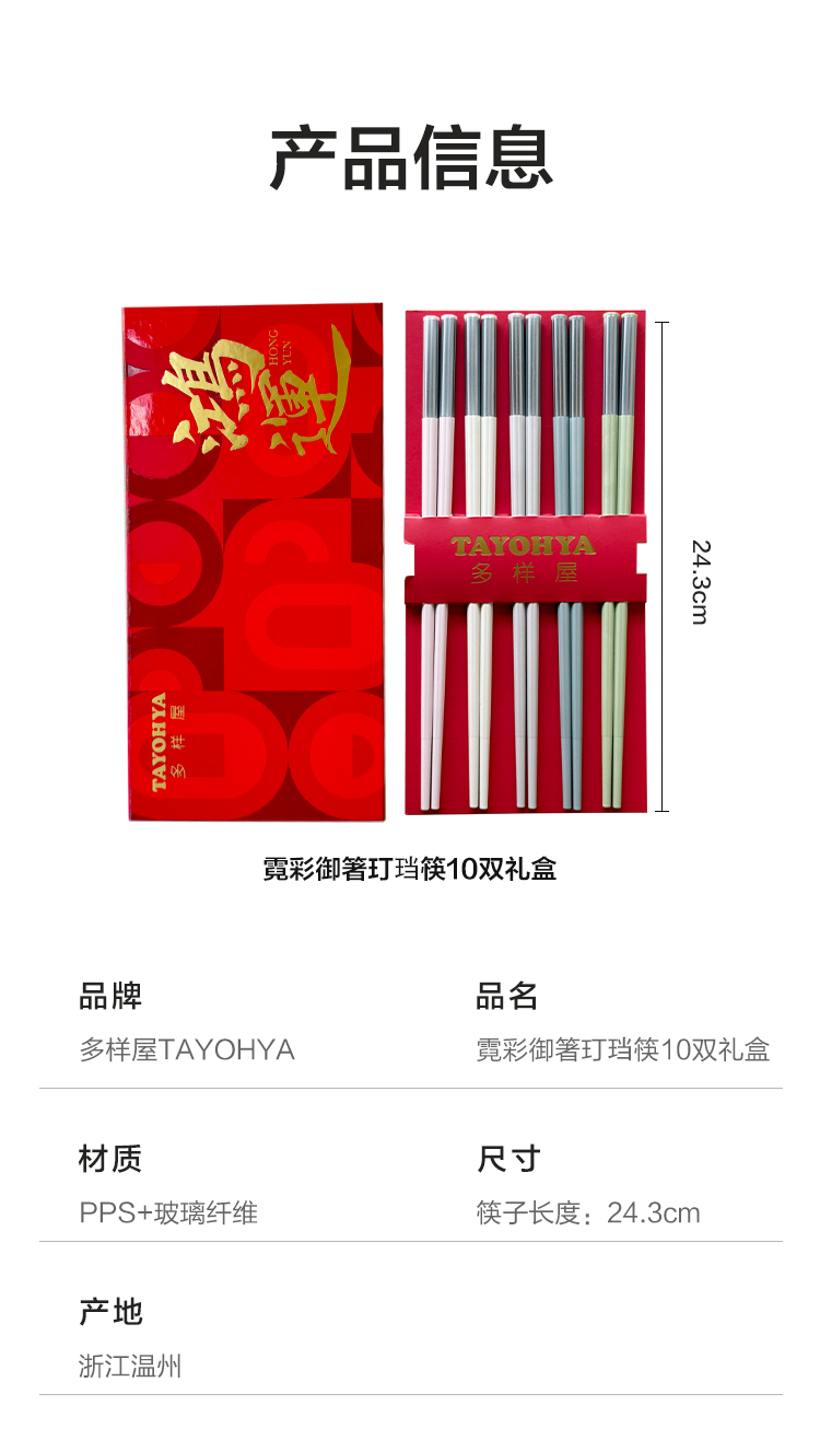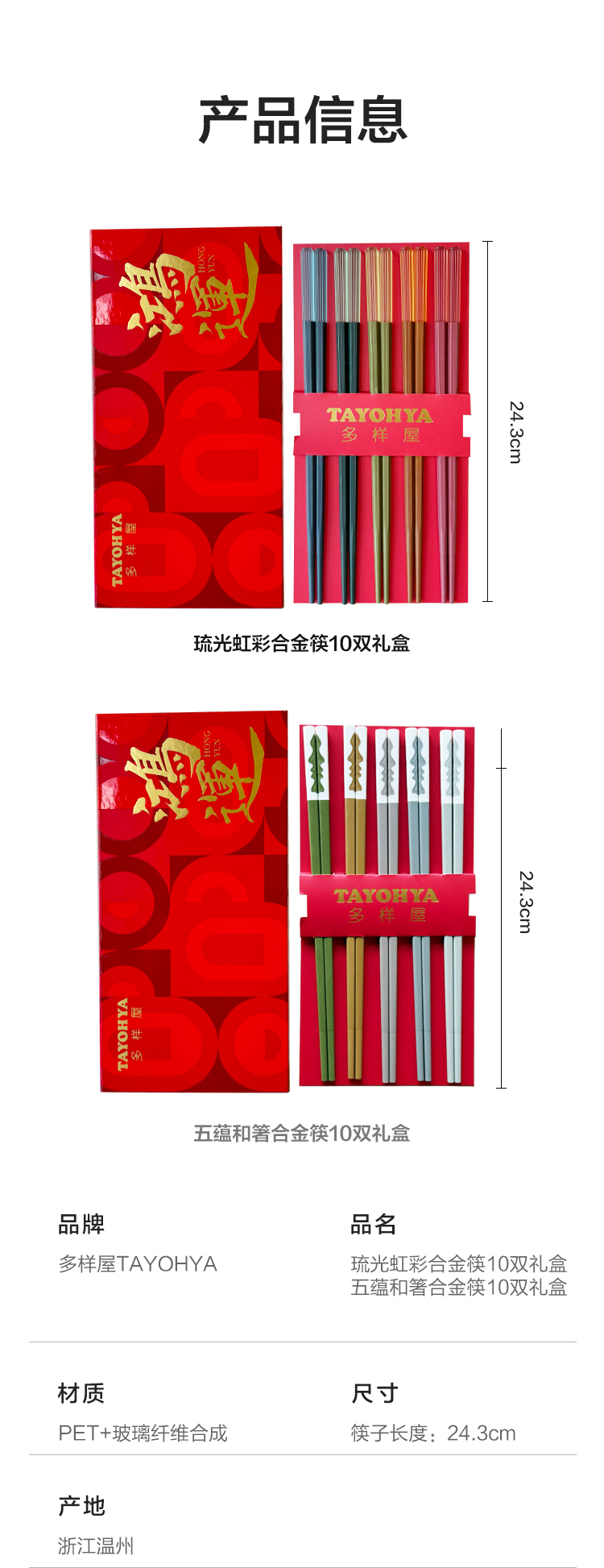 【多样屋专柜】多样屋琉光虹彩合金筷/五蕴和箸合金筷/霓彩御箸玎珰筷10双礼盒