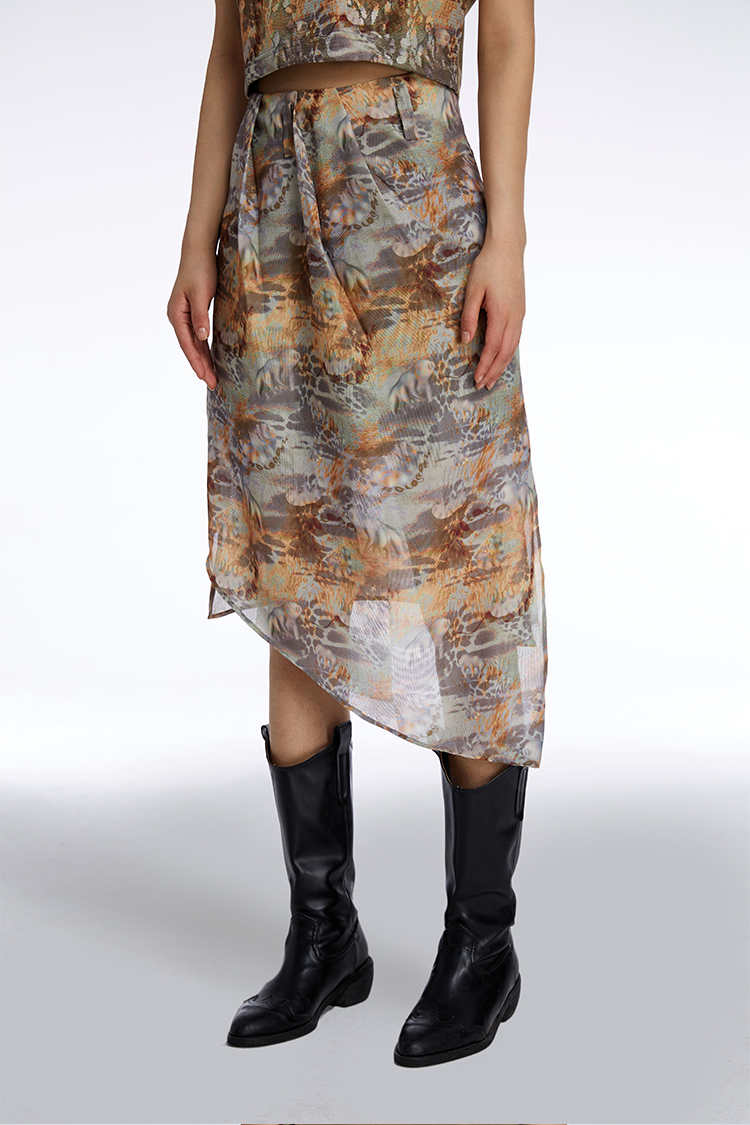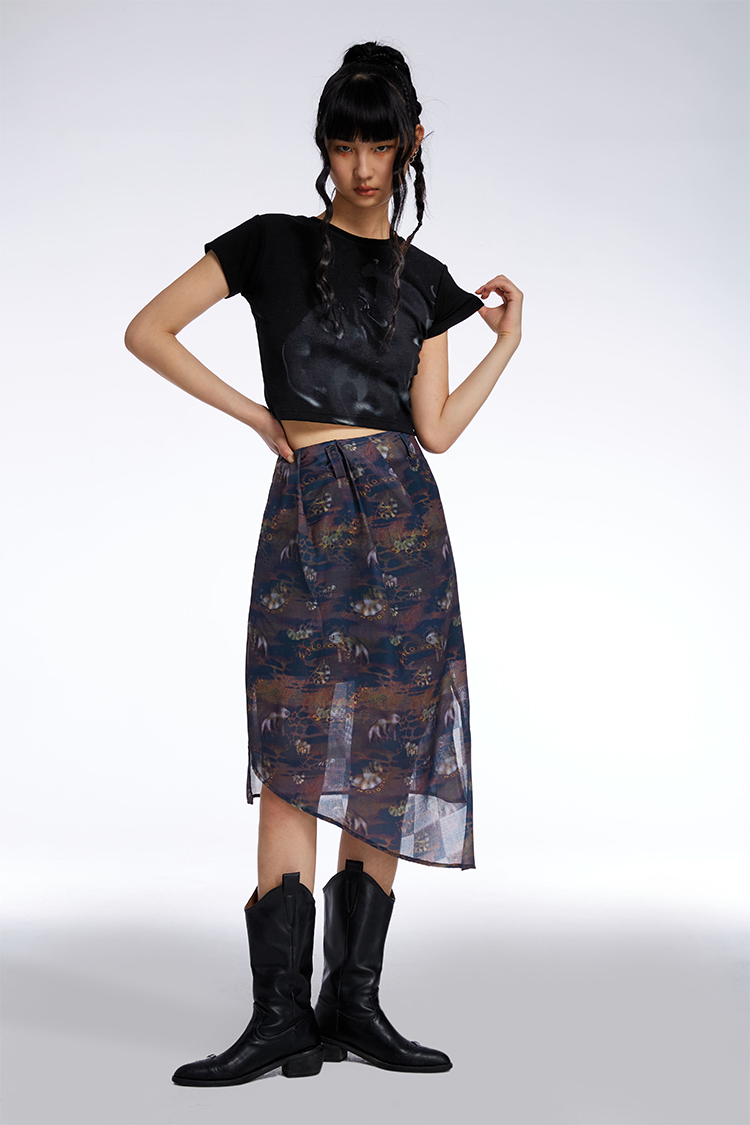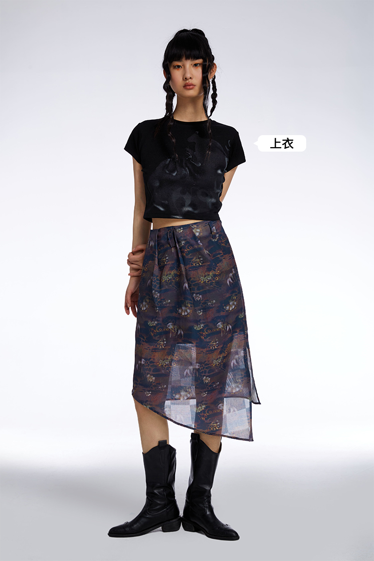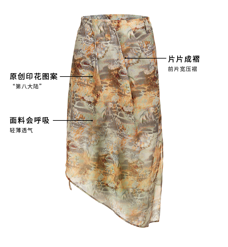 HOLONOMIC「第八大陆」原创压褶设计感小众不规则印花半身裙