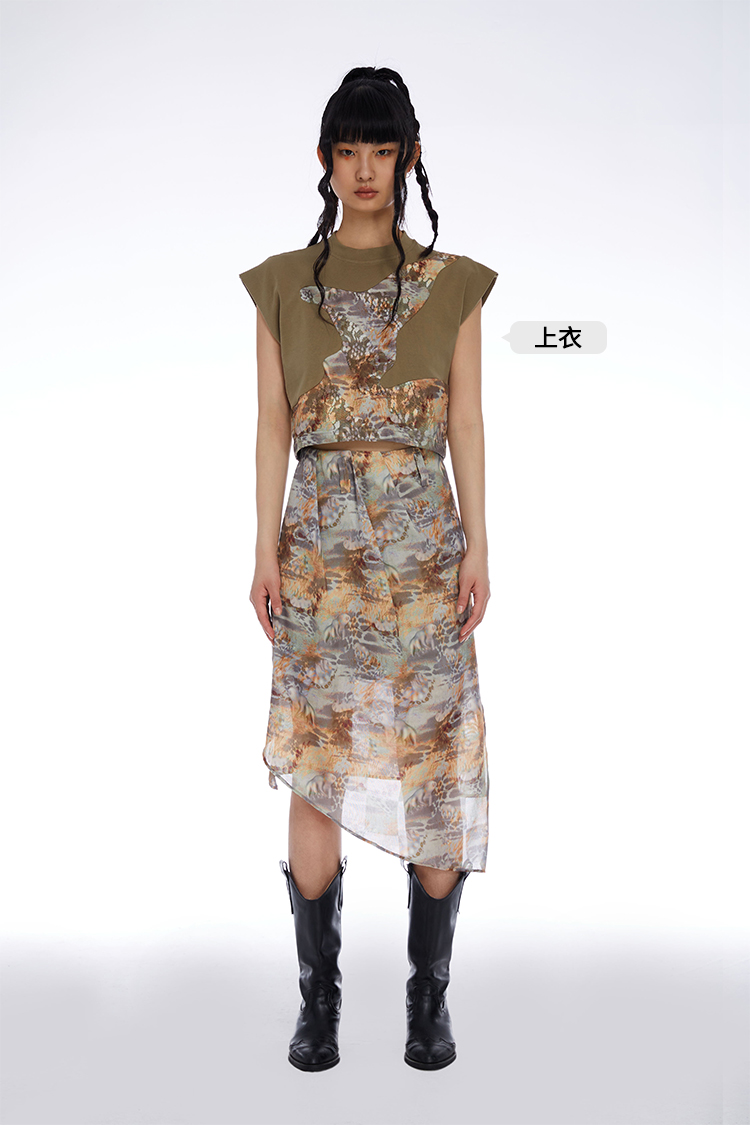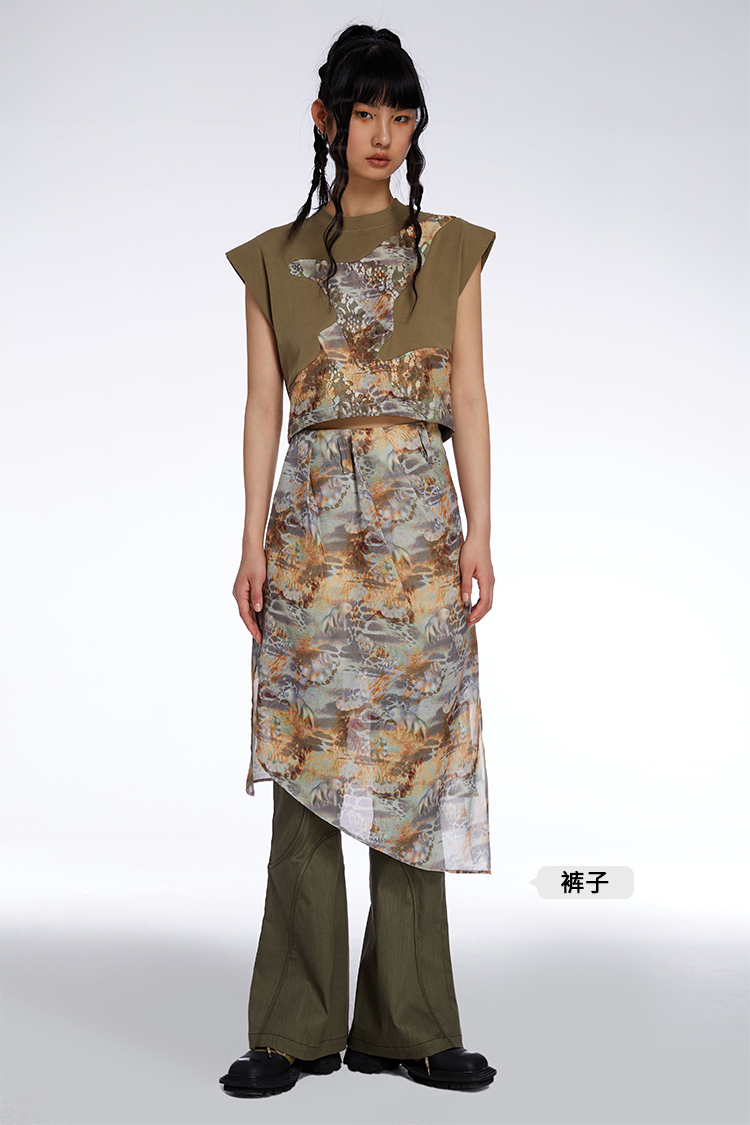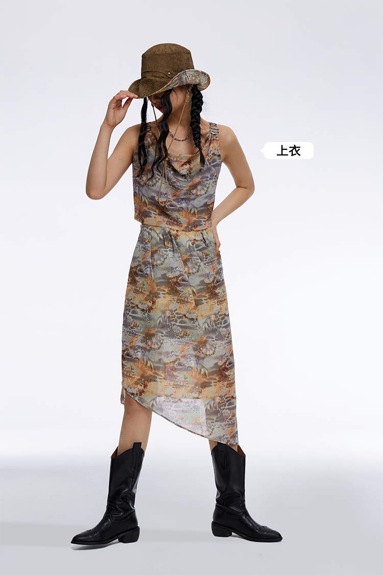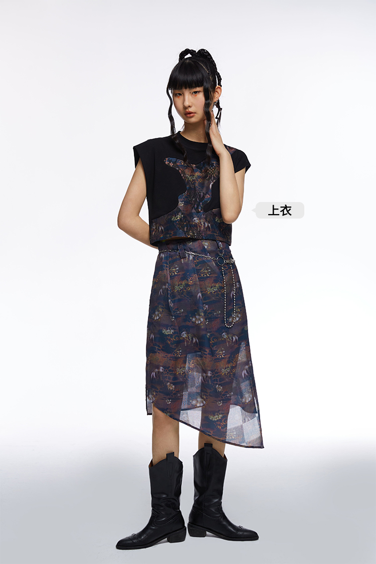 HOLONOMIC「第八大陆」原创压褶设计感小众不规则印花半身裙