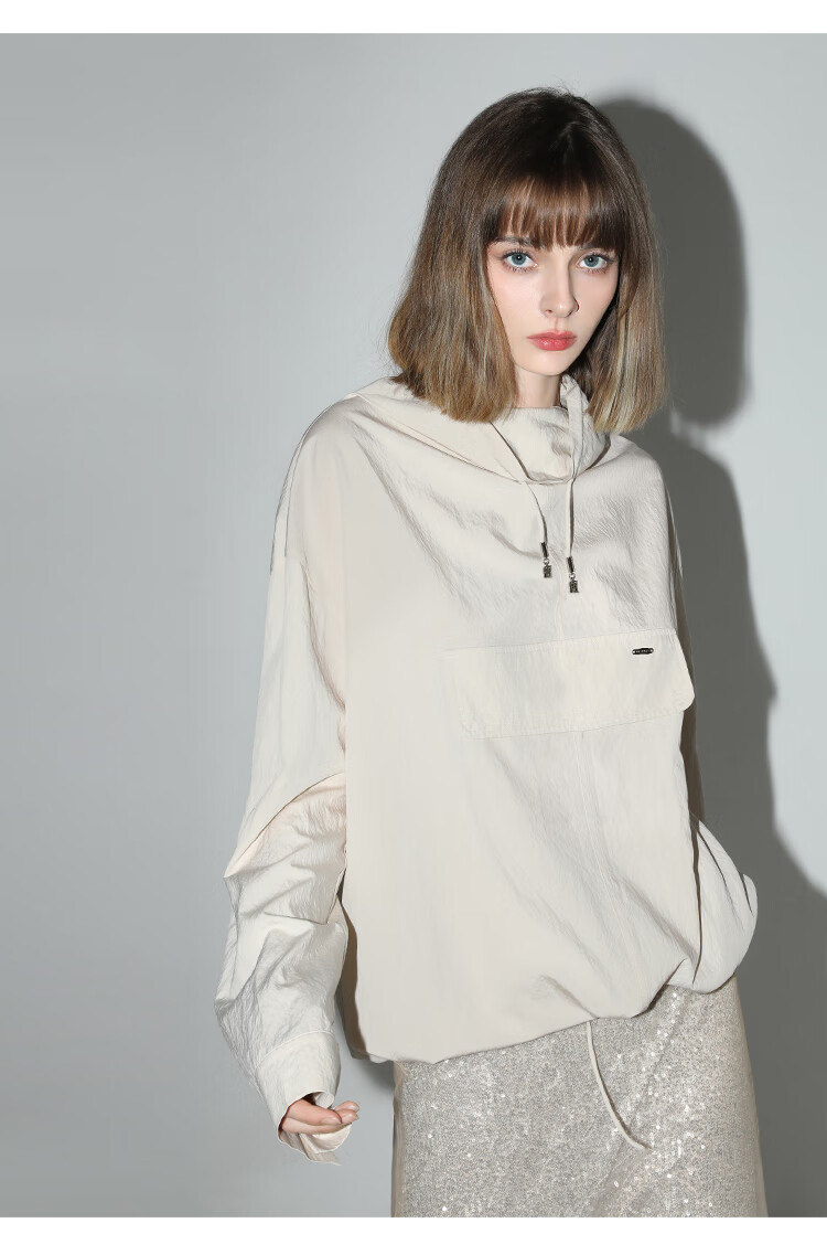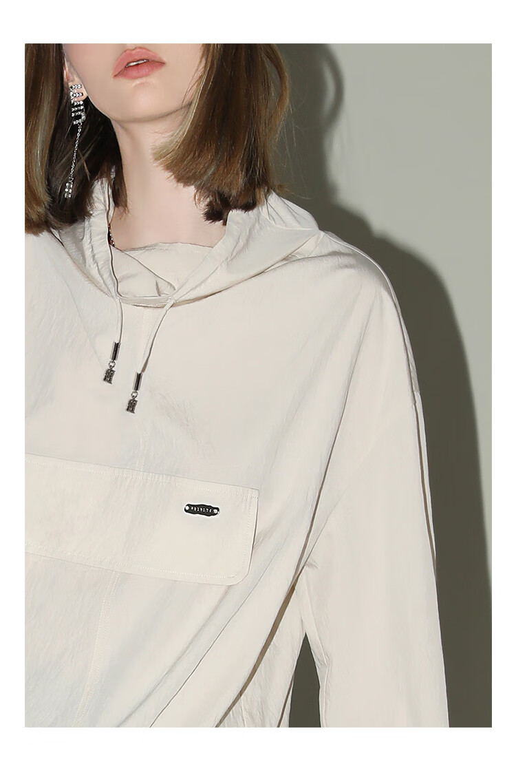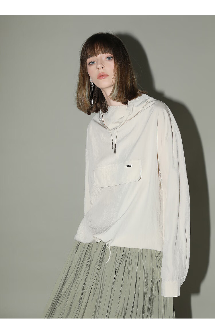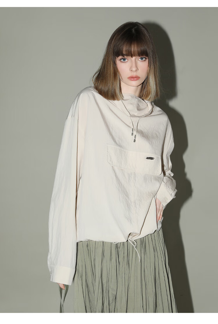 COCOBELLA设计感荡领轻薄遮阳外套休闲工装风抽绳卫衣SC7017