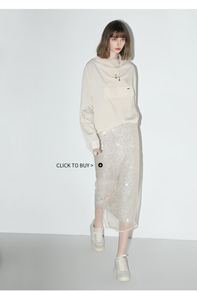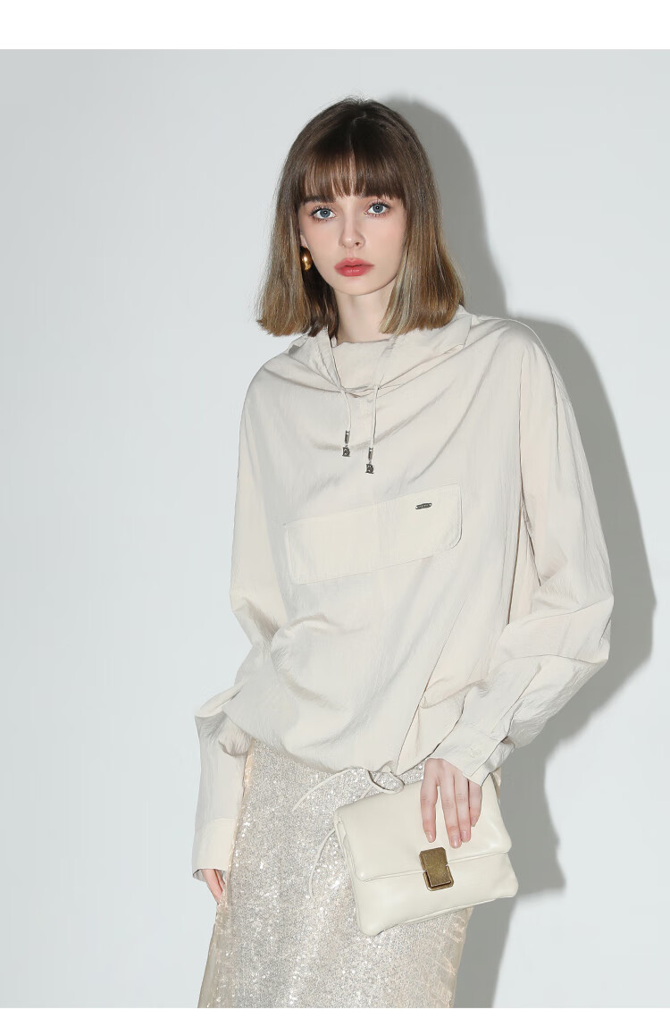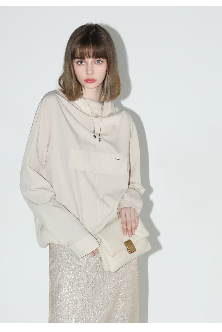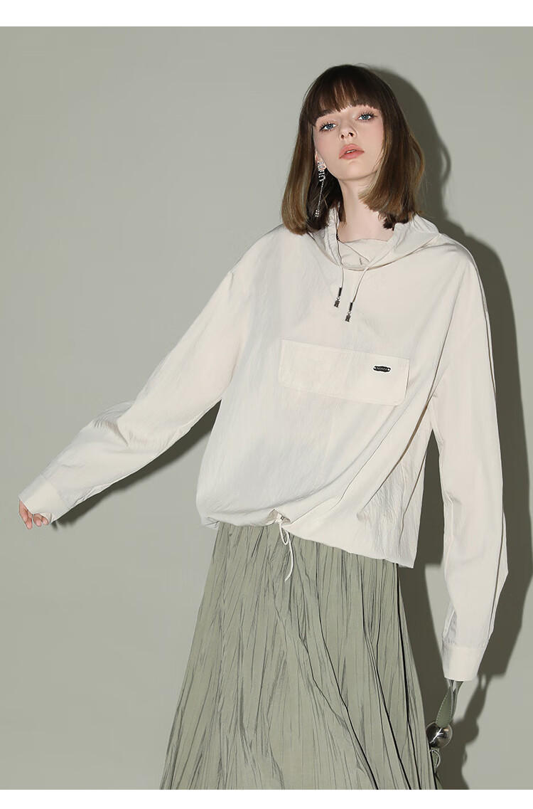 COCOBELLA设计感荡领轻薄遮阳外套休闲工装风抽绳卫衣SC7017