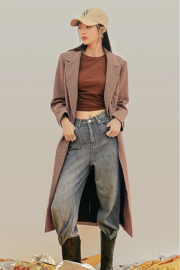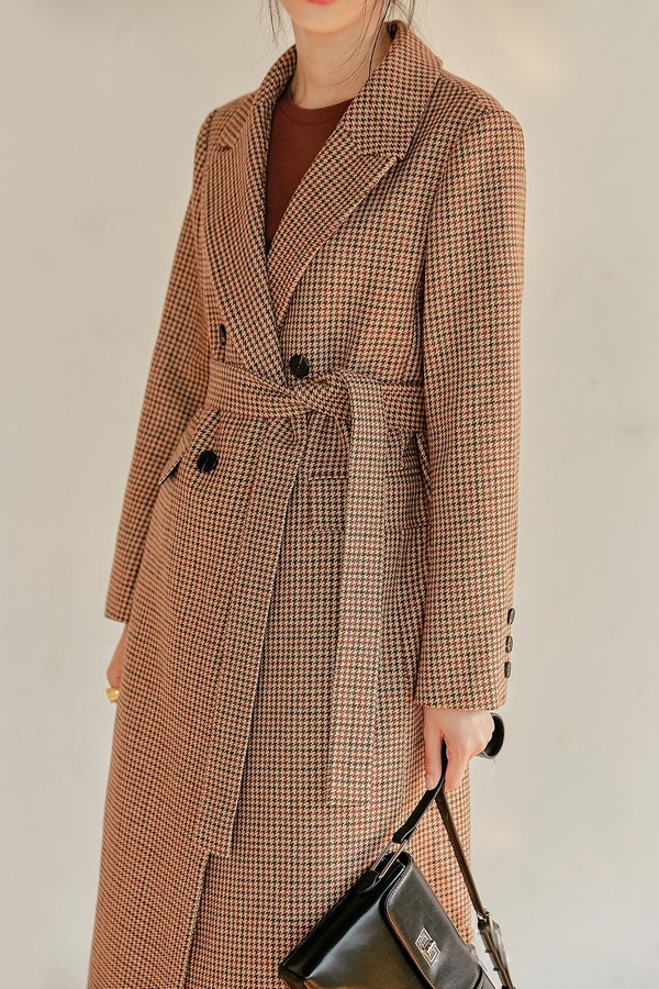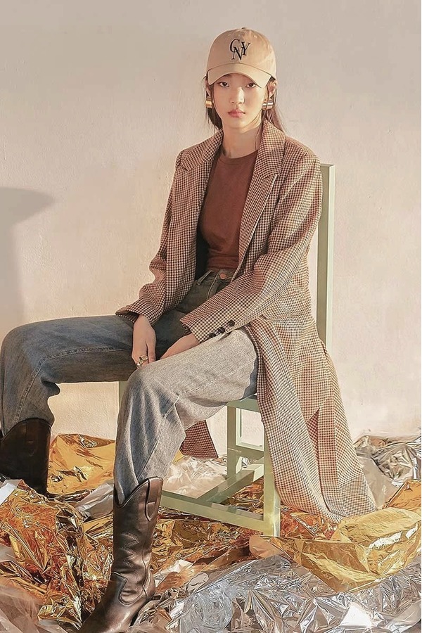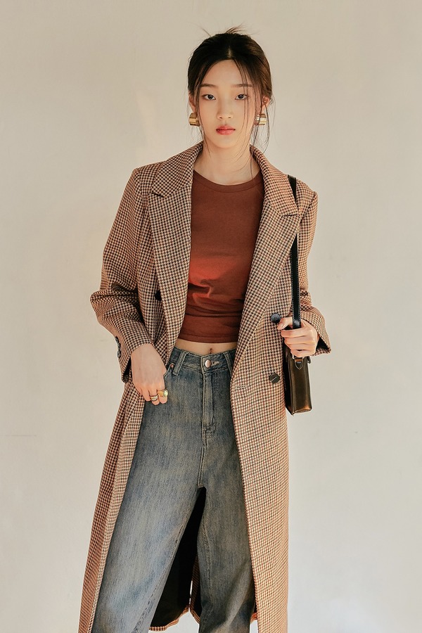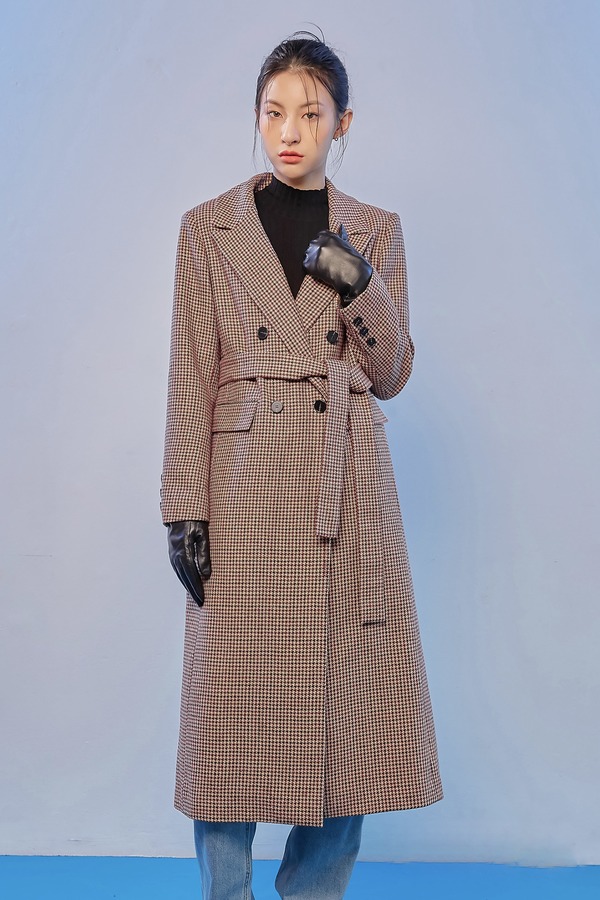 韩都衣舍/Handu Group 韩版格纹长款双排扣西装外套 15132