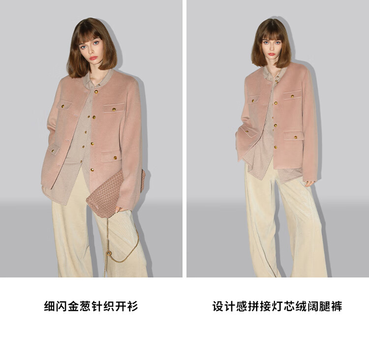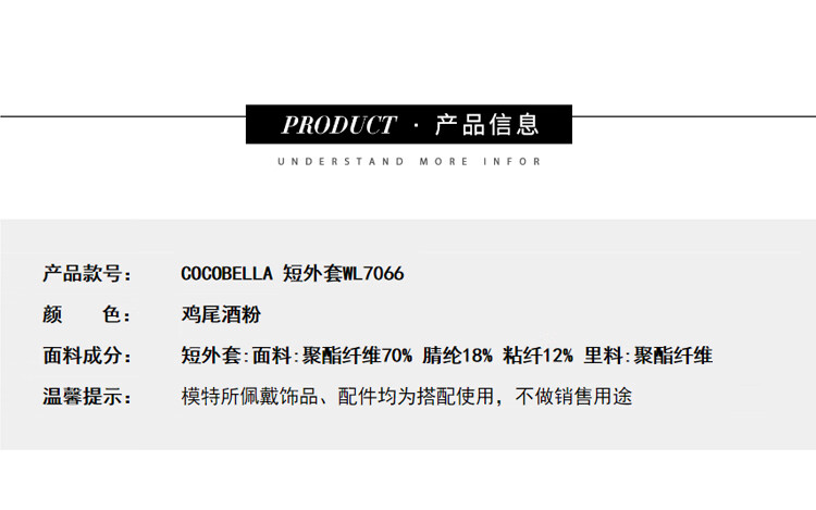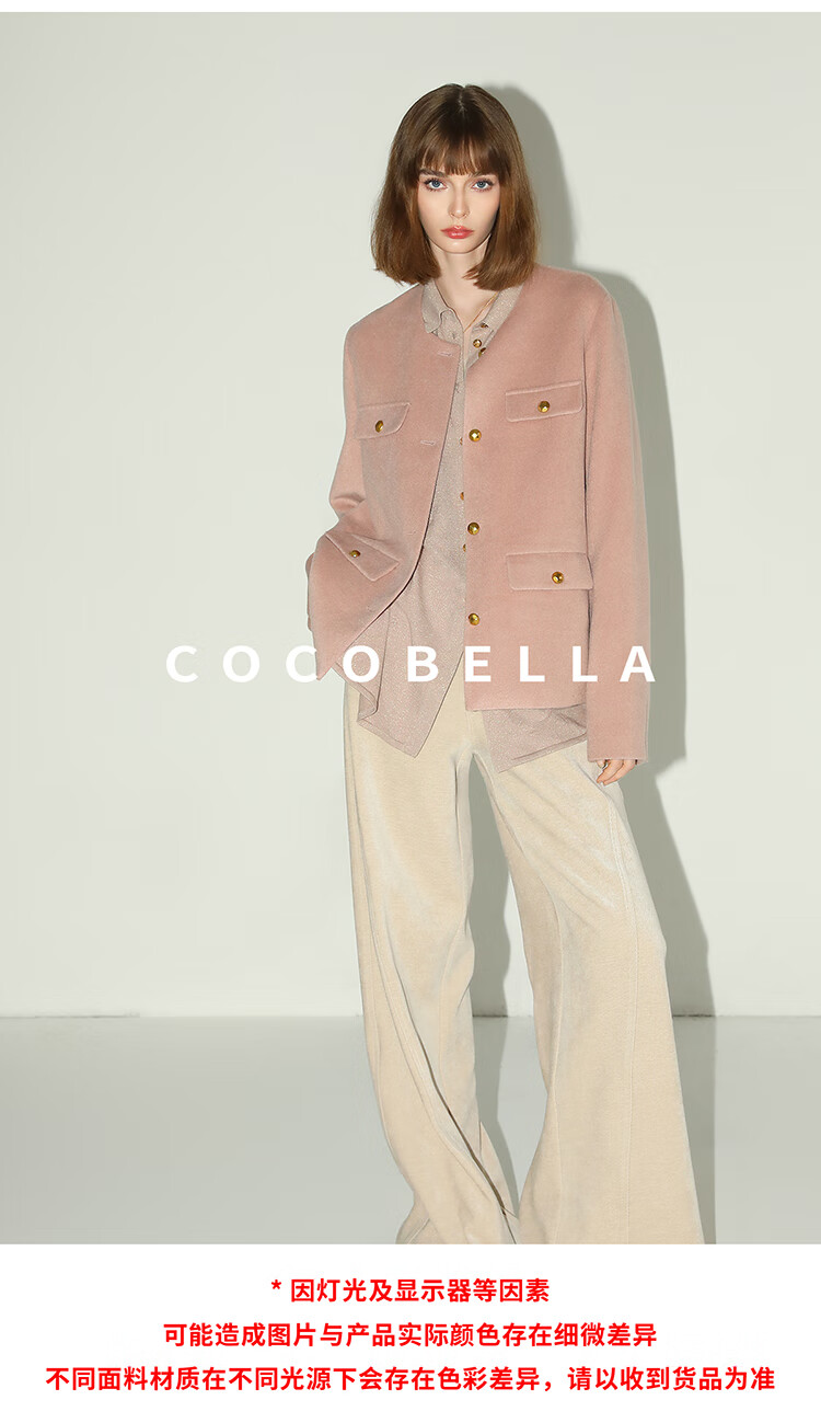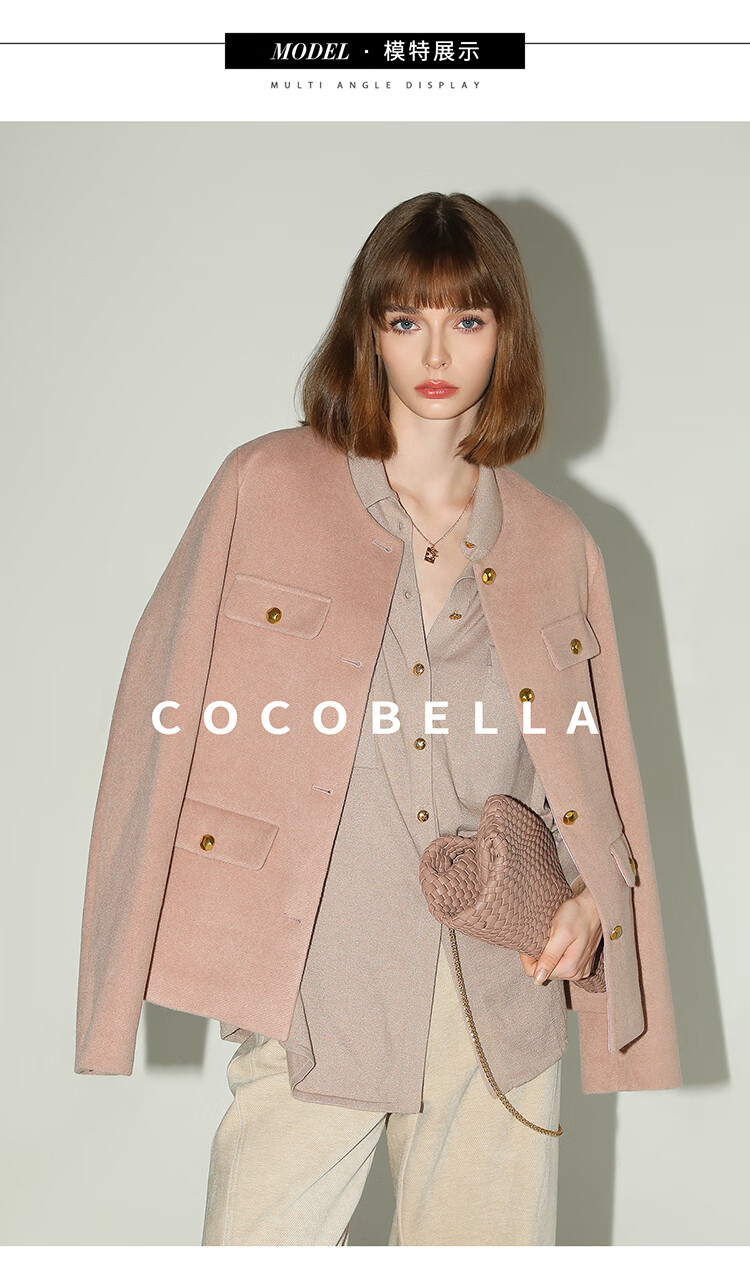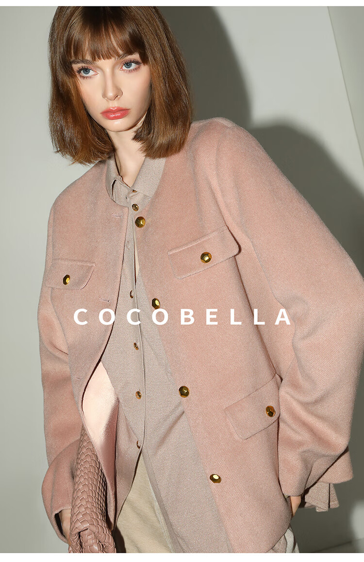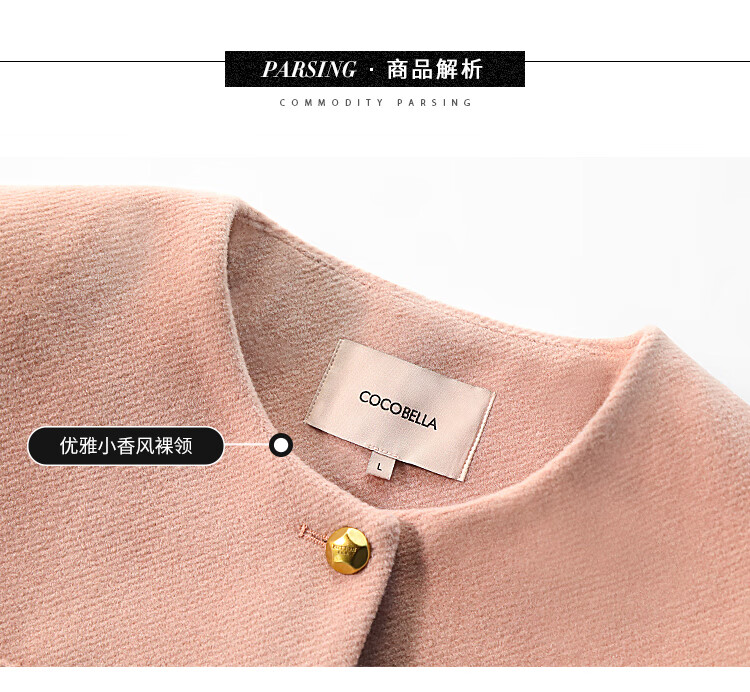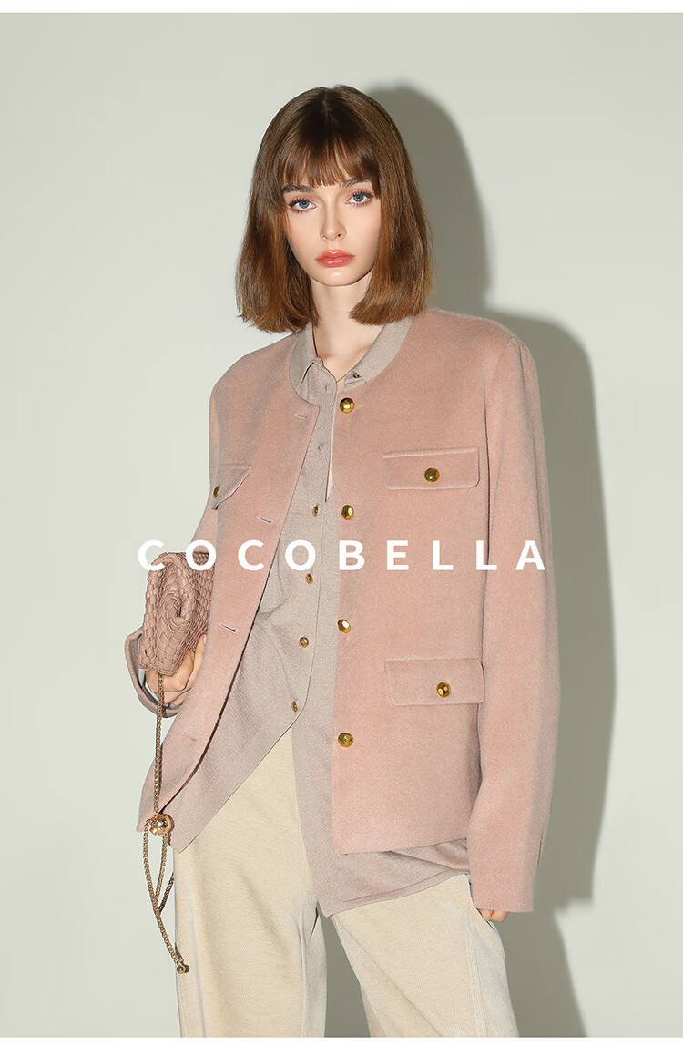 COCOBELLA气质粉小香风短外套质感金属扣箱型毛呢大衣WL7066