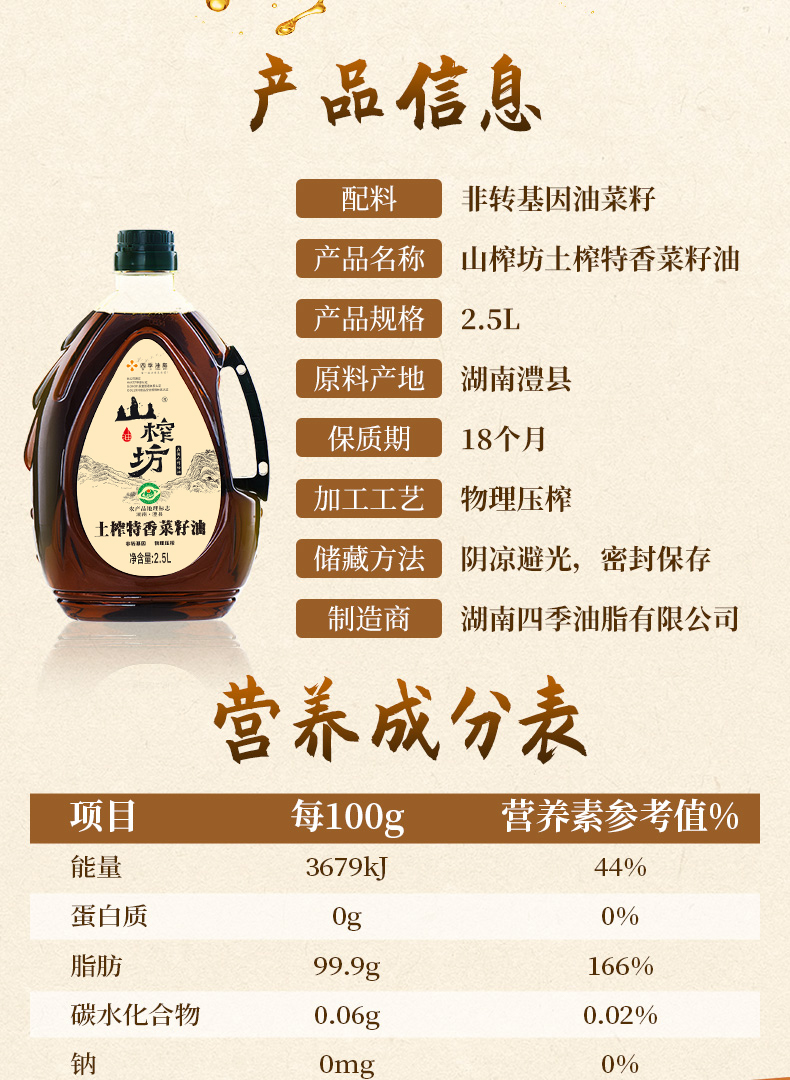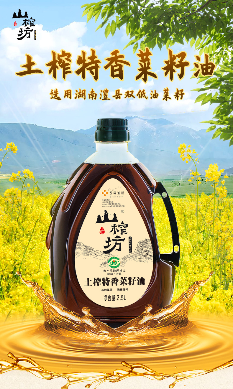 山榨坊2.5L土榨特香菜籽油2.5L【XPTX】