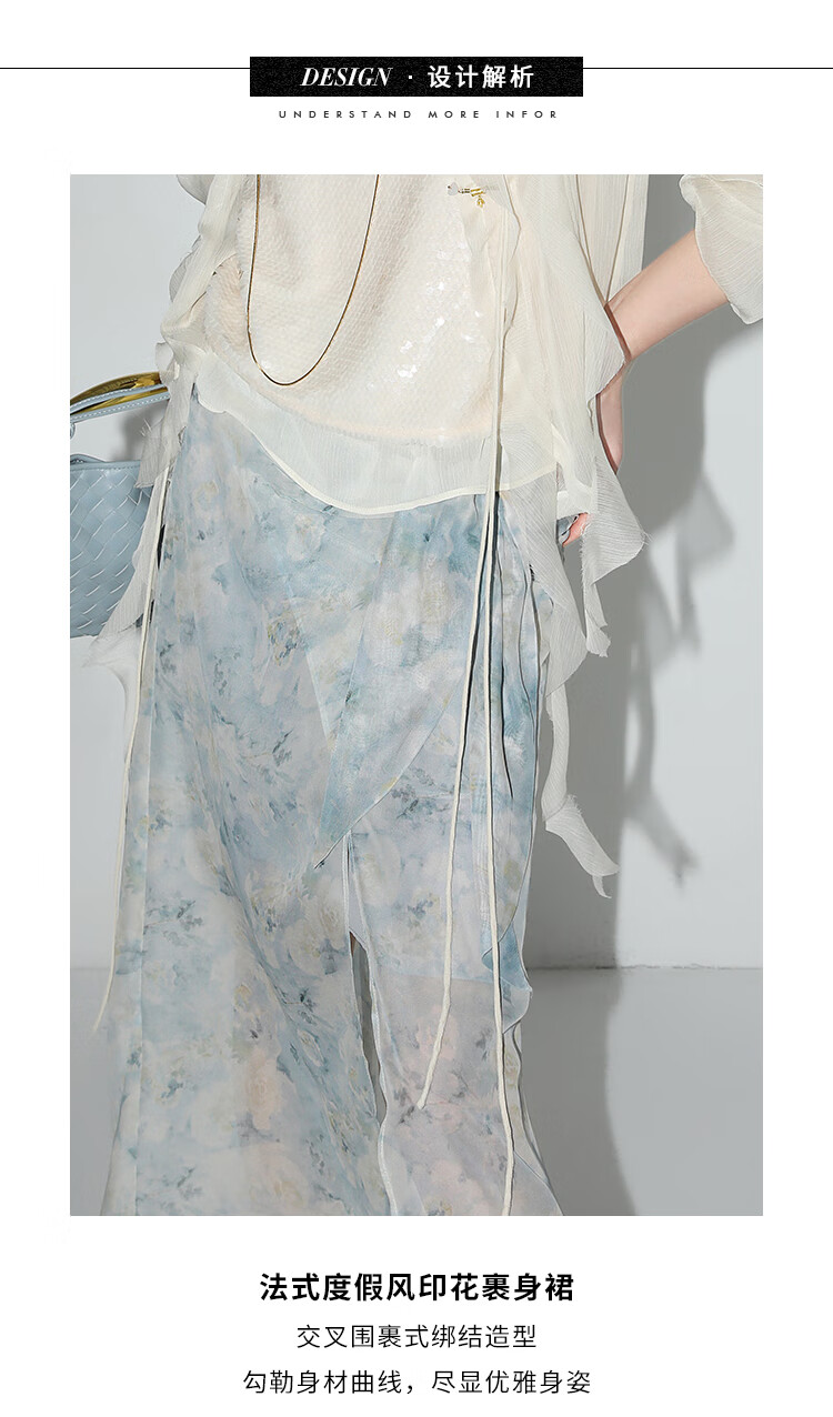 【限时秒杀】COCOBELLA设计感绑带清新雪纺半身裙女夏围裹式仙女长裙HS123