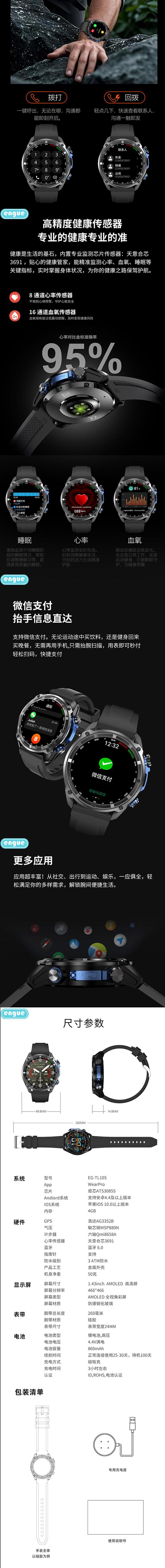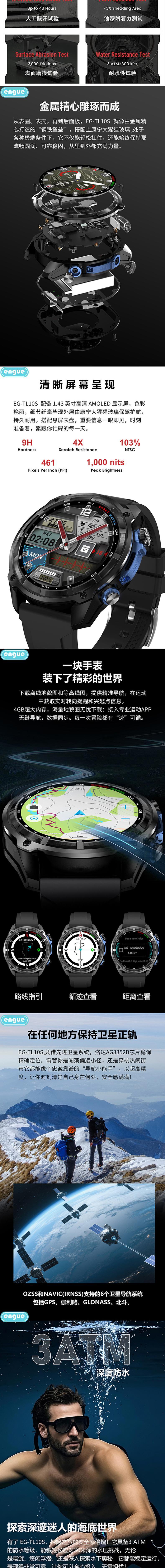 【自营】engue恩谷1.43AMOLED高清真血氧智能手表EG-TL10S视网膜屏血氧饱和度运动跟踪