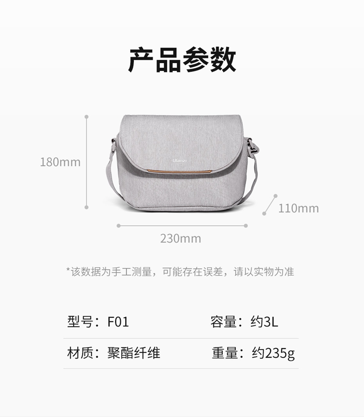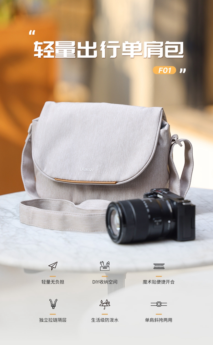 Ulanzi优篮子F01/F02 轻量出行单肩包摄影摄像相机微单镜头保护收纳包适用于索尼佳能富士外拍旅游休闲数码摄影包