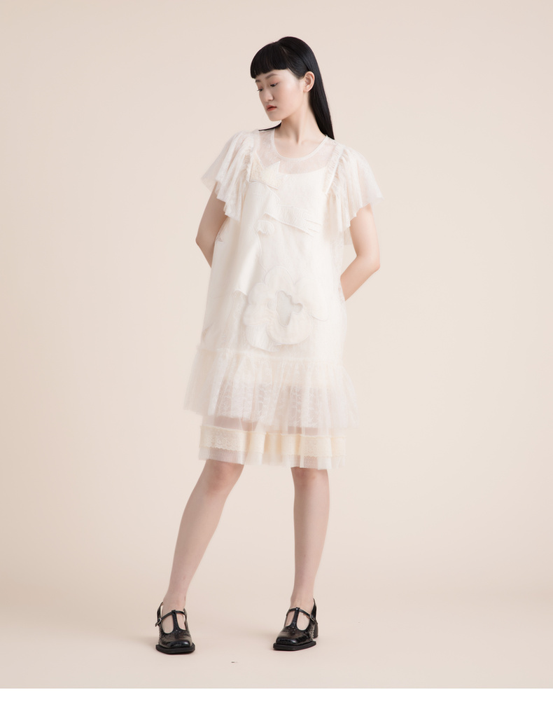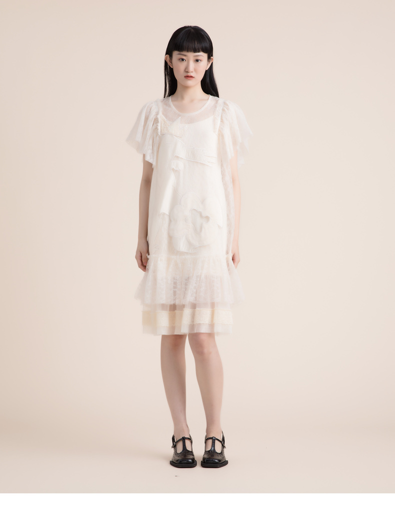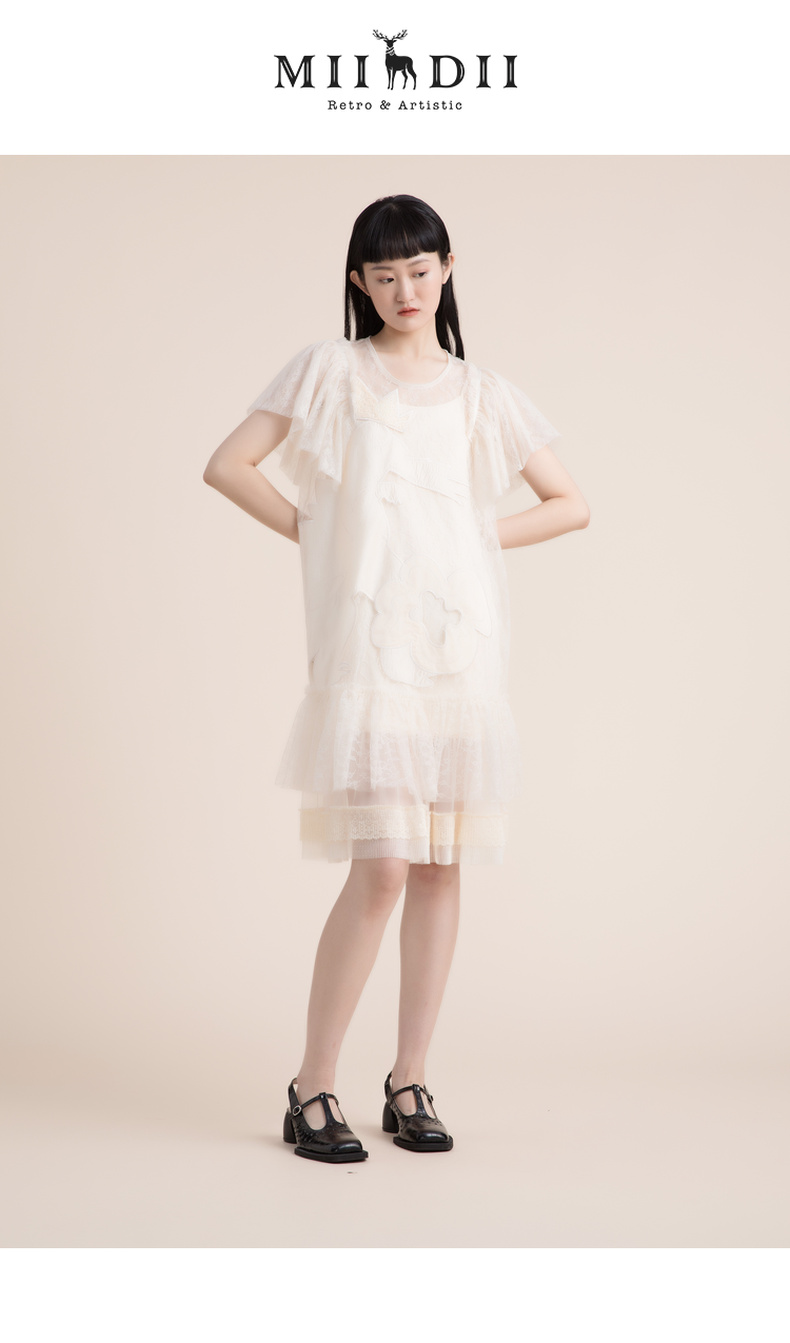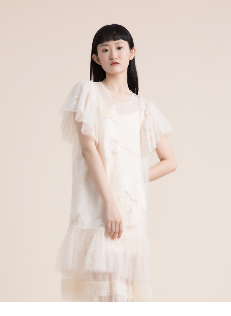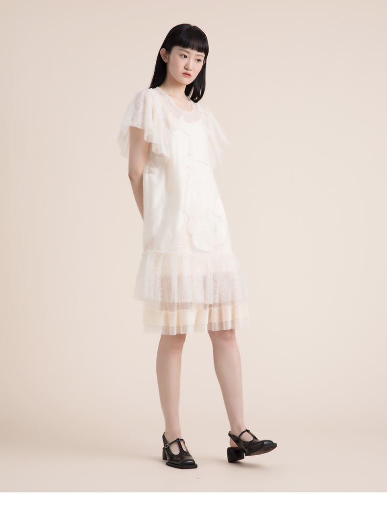 谜底连衣裙2022夏季新款高订质感刺绣泡泡袖蕾丝仙女裙222GL0597