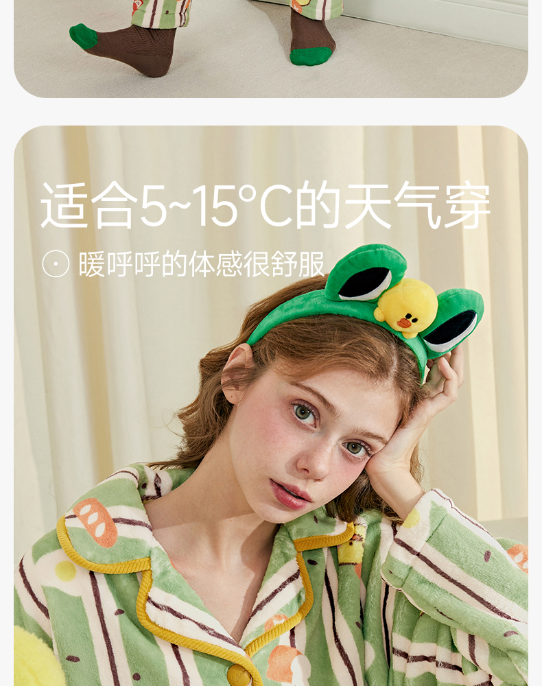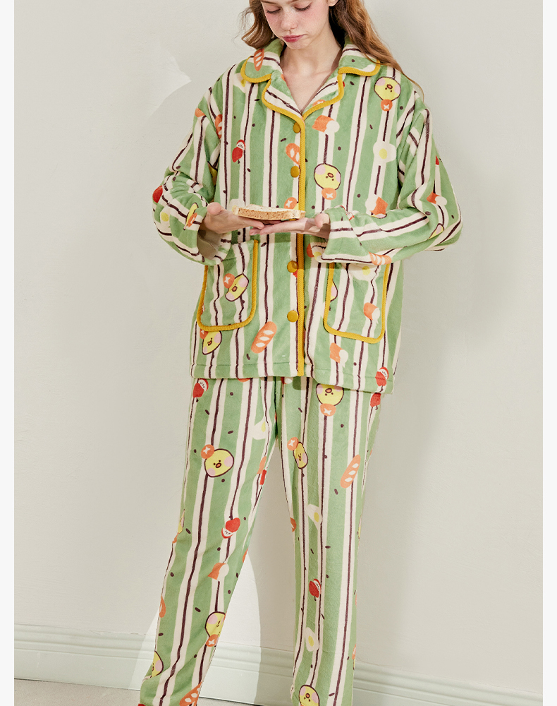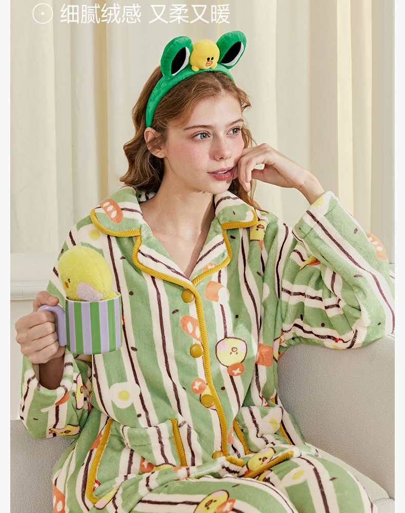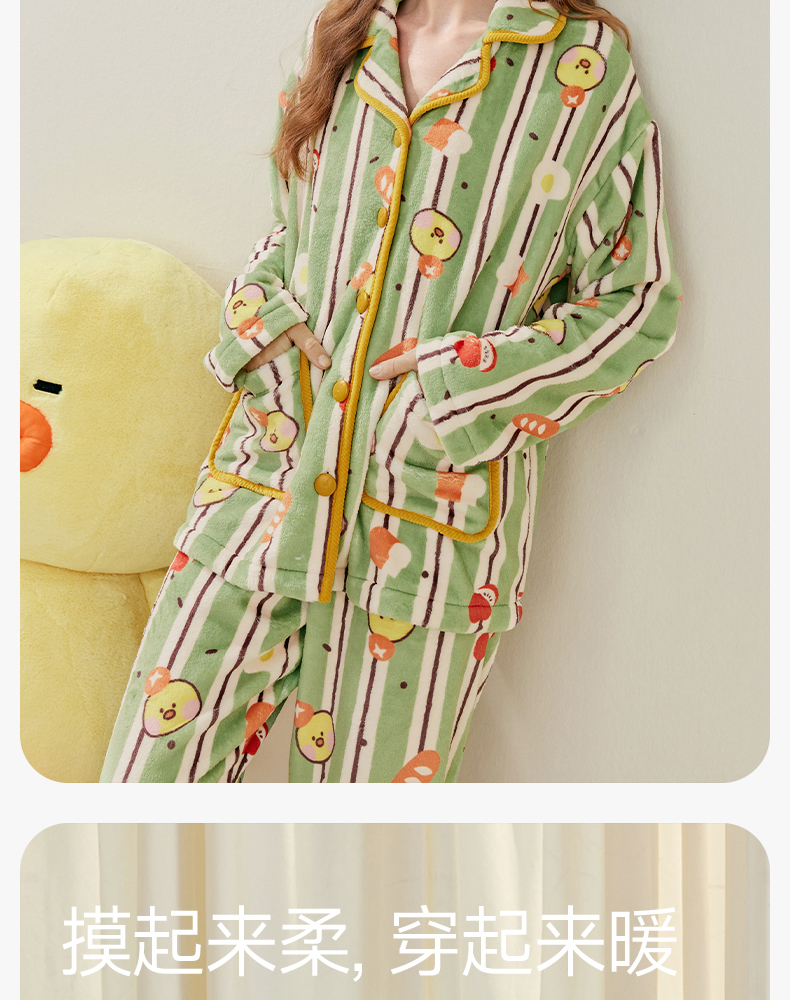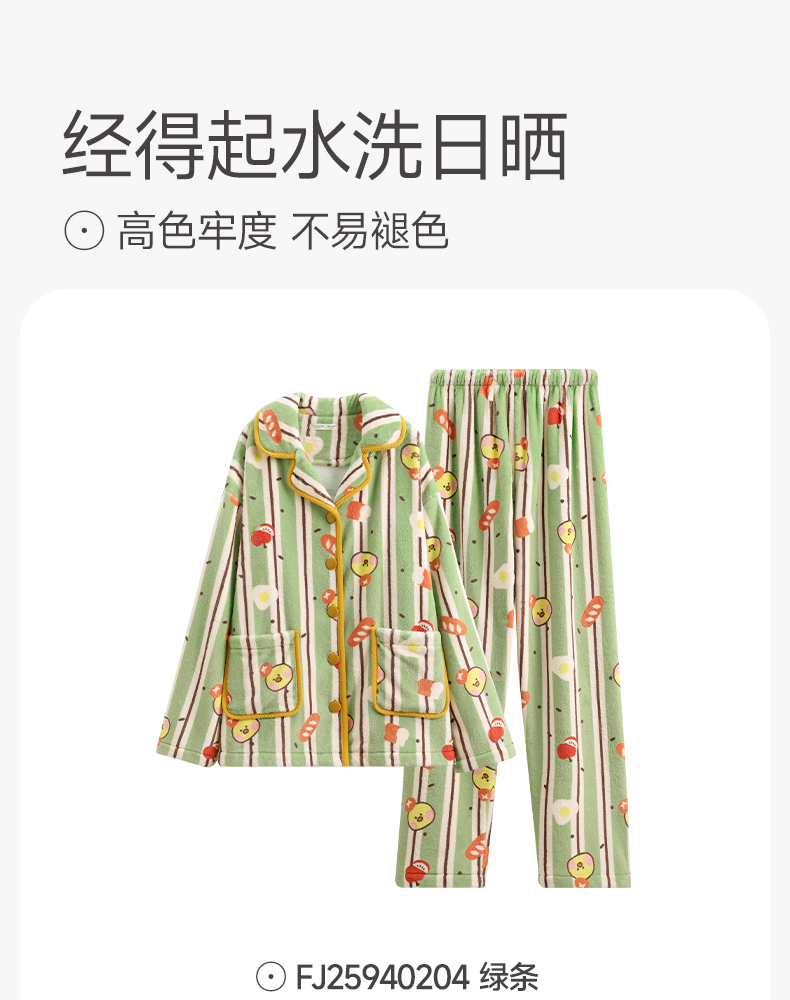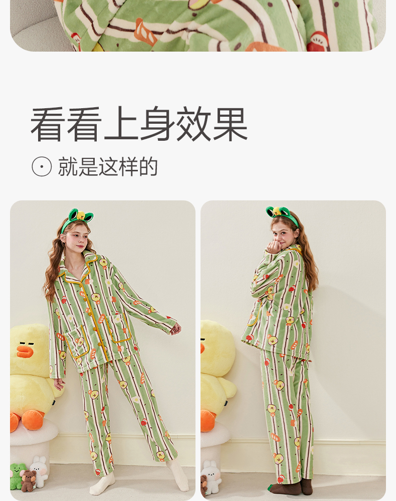 芬腾珊瑚绒女士睡衣秋冬季新款加绒加厚套装布朗熊宽松大码家居服