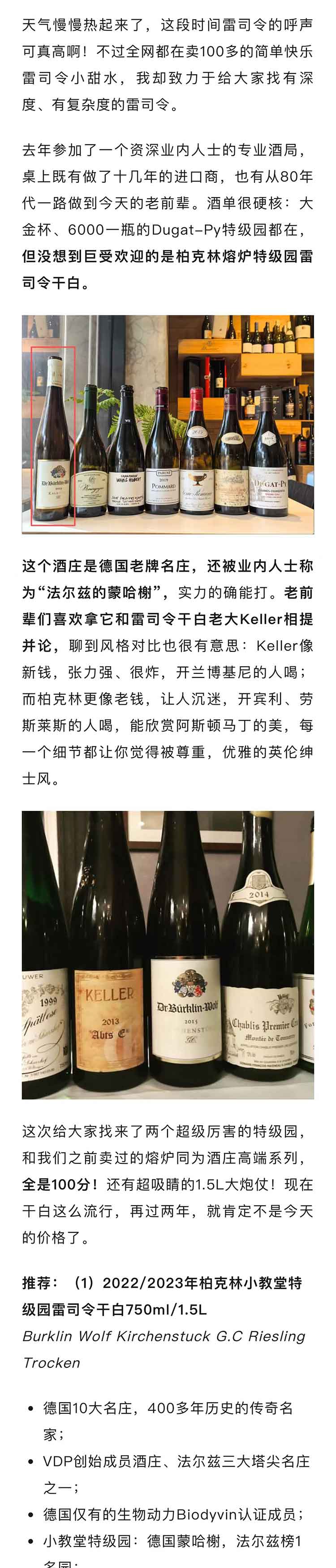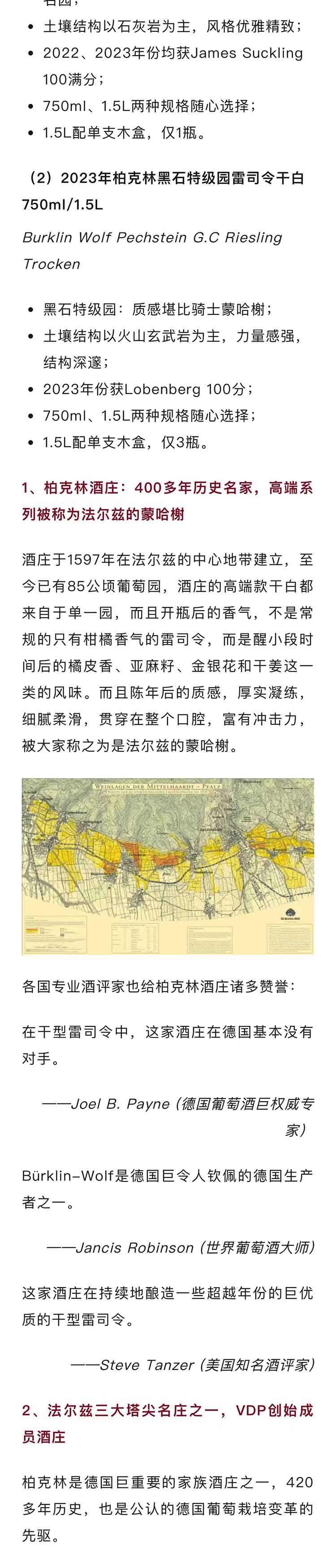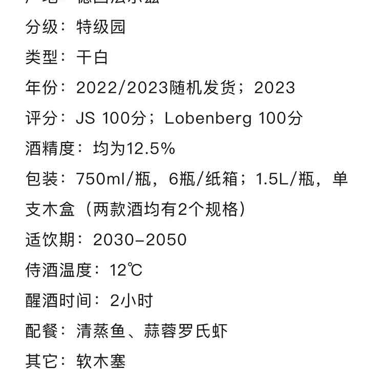 【100分】德国法尔兹2023年柏克林黑石特级园雷司令干白750ml/1.5L