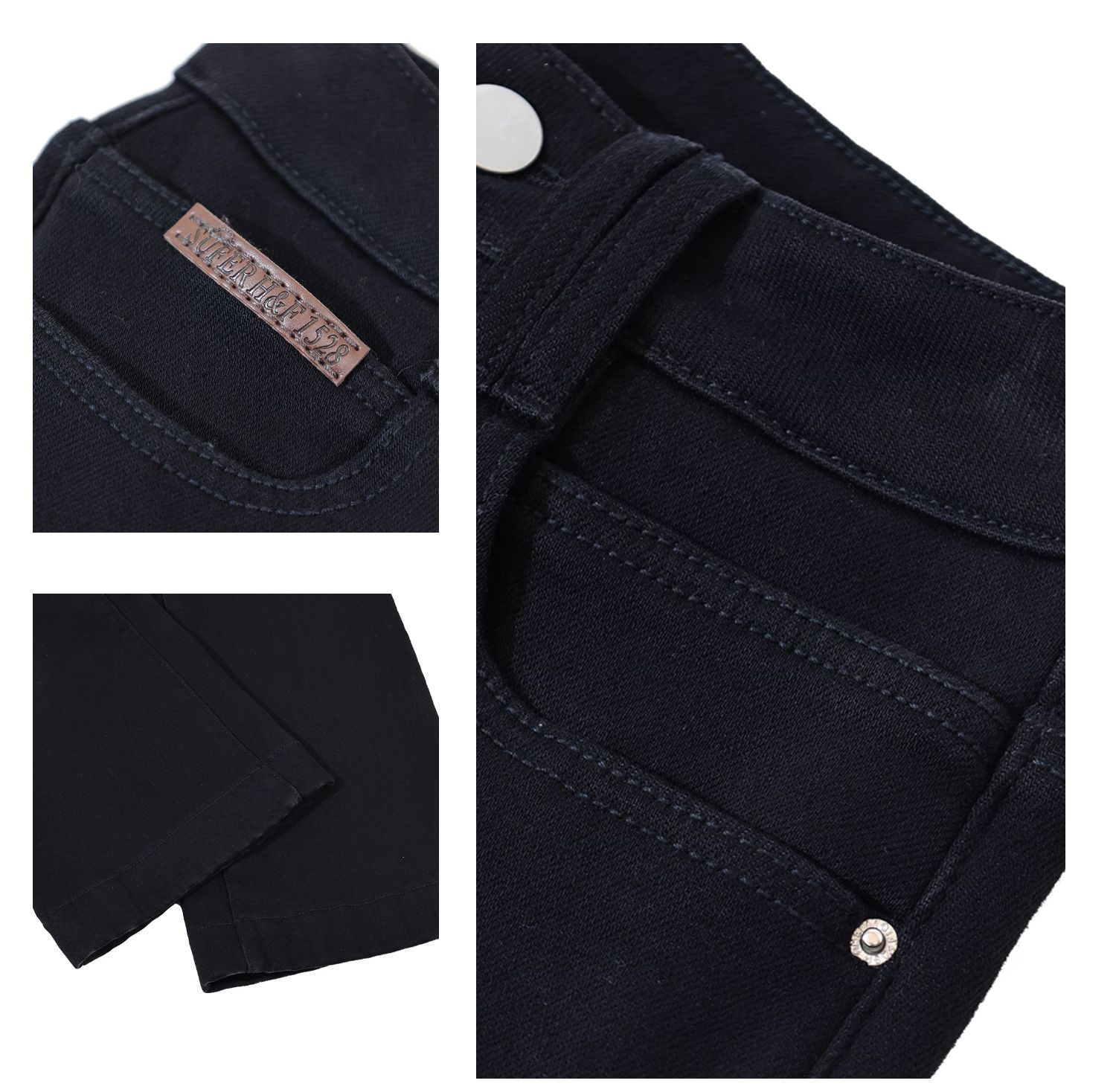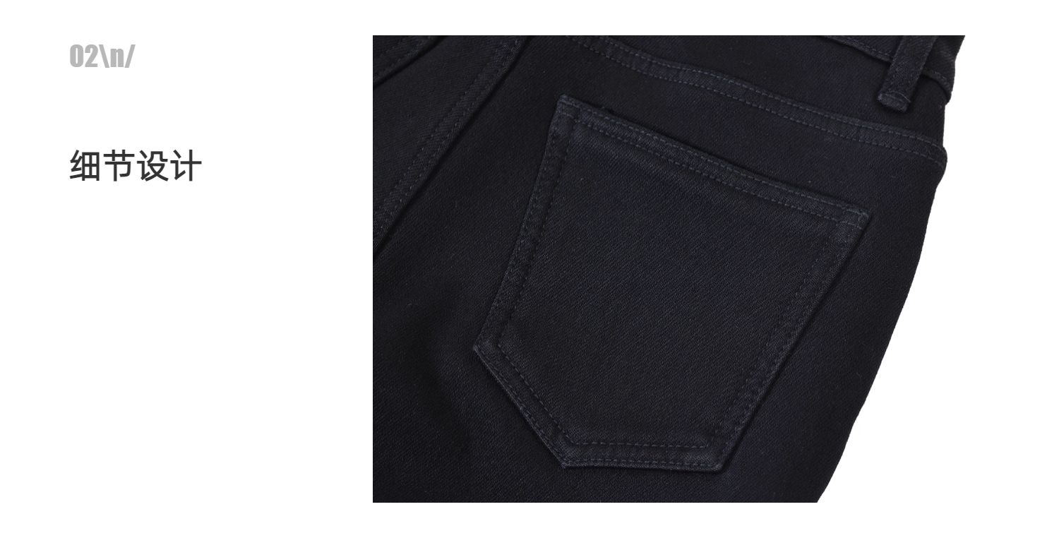 半身缘女裤 冬季保暖松紧腰阔腿裤加厚加绒直筒牛仔裤254202U10120133