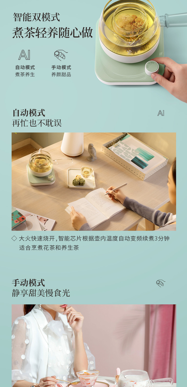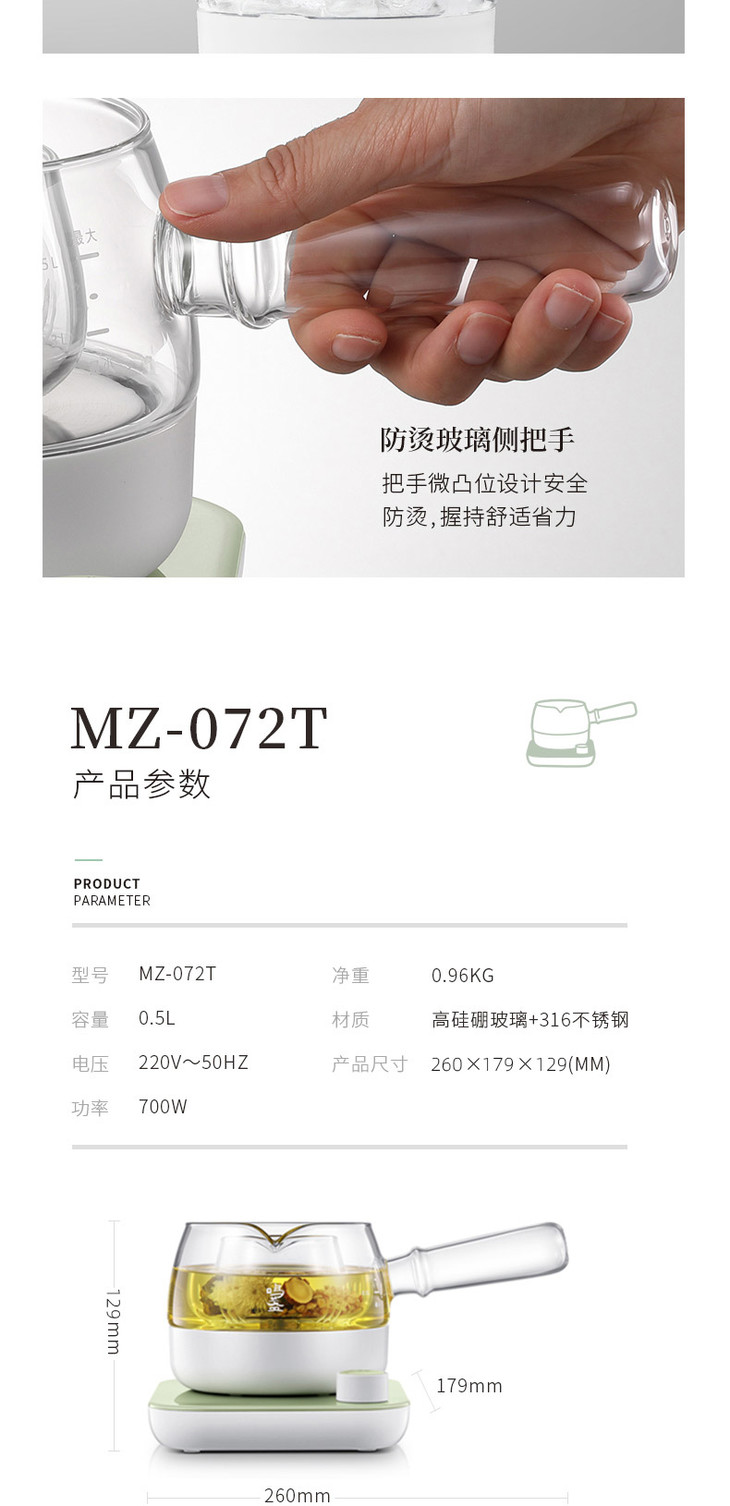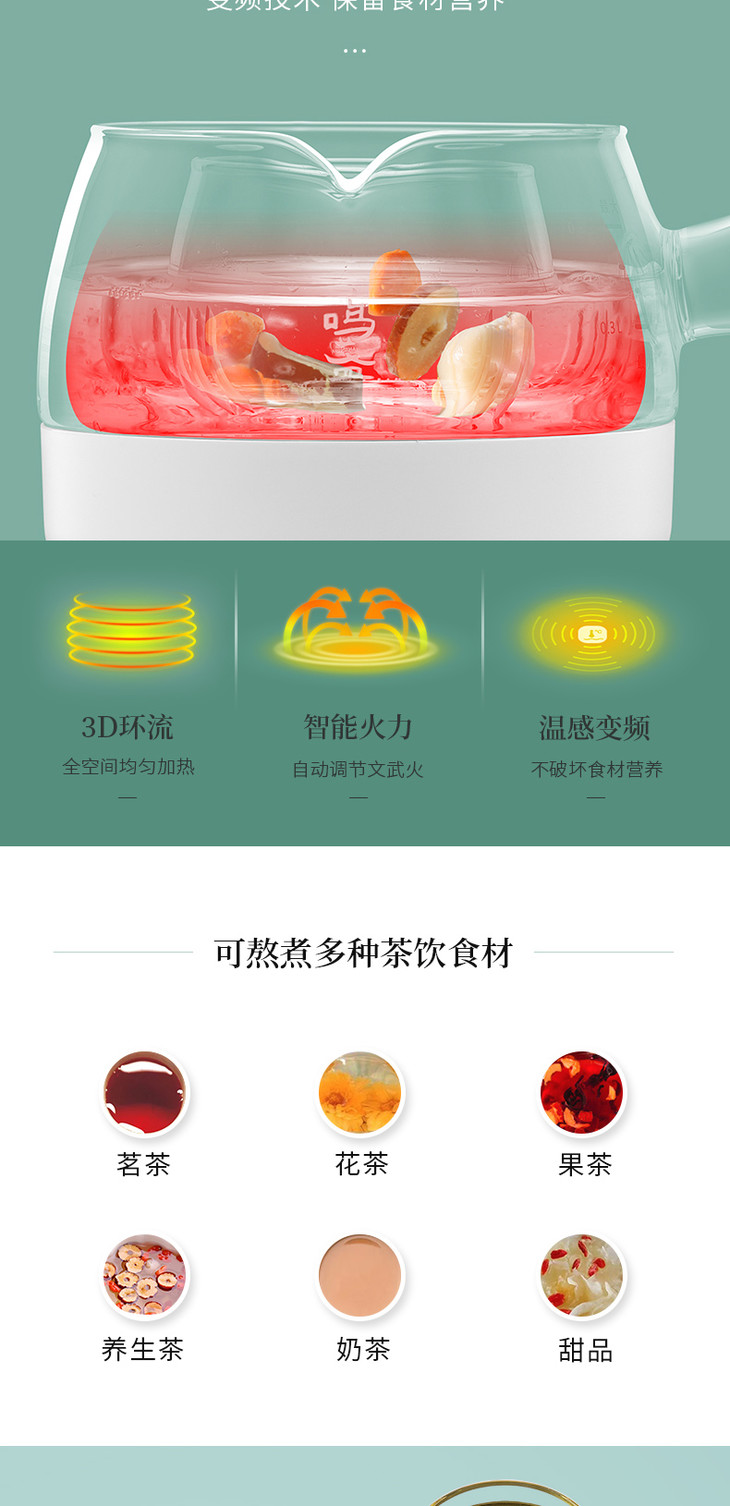 鸣盏 三合一养生玻璃煮茶器MZ-072T [福利品]