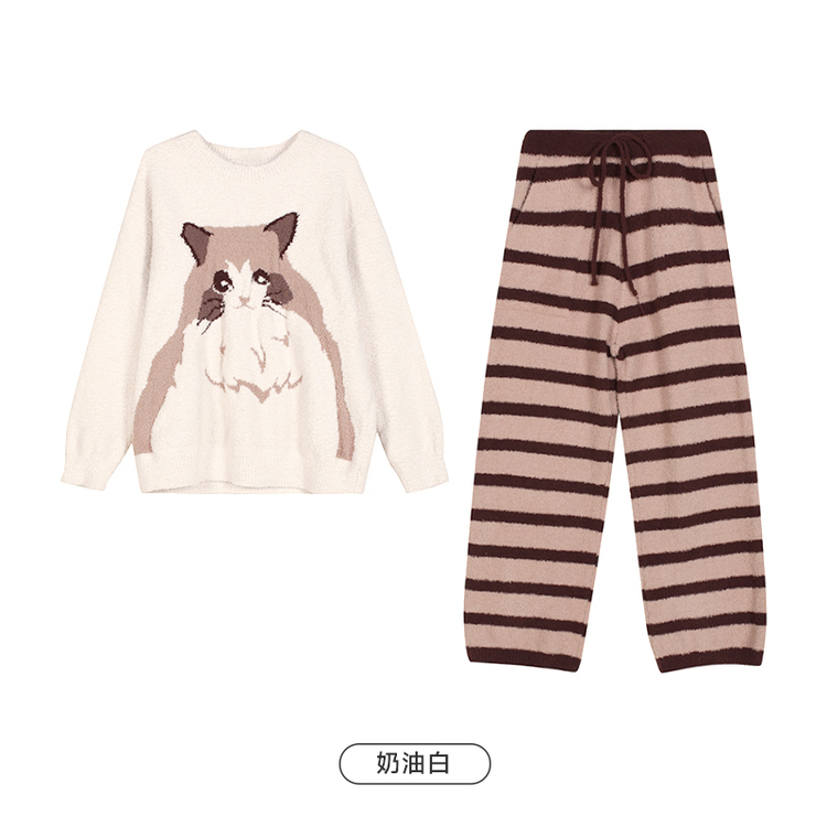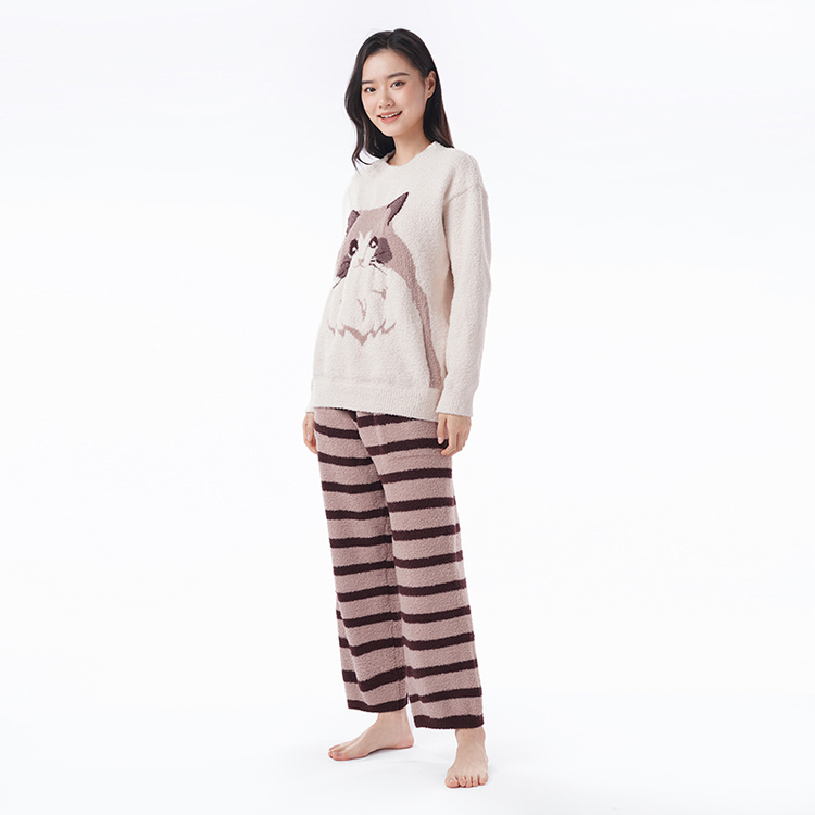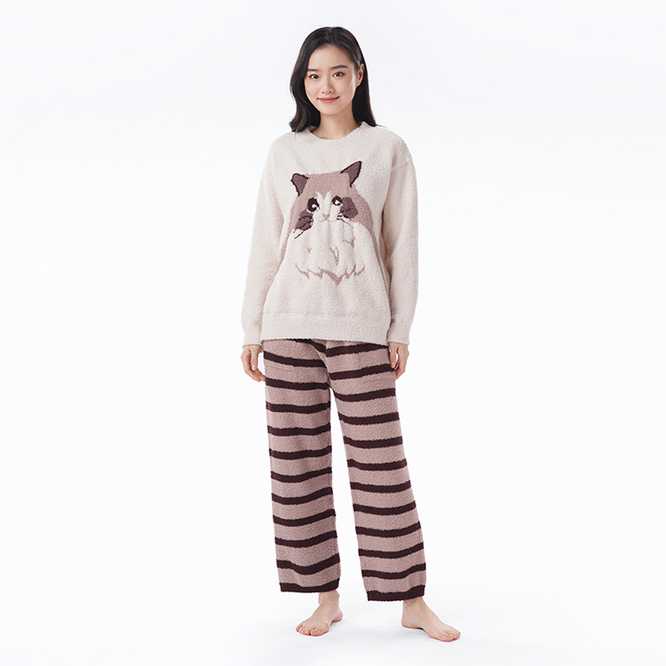 都市丽人睡衣半边绒睡衣女士家居服长袖长裤半边绒套装LHH9D6
