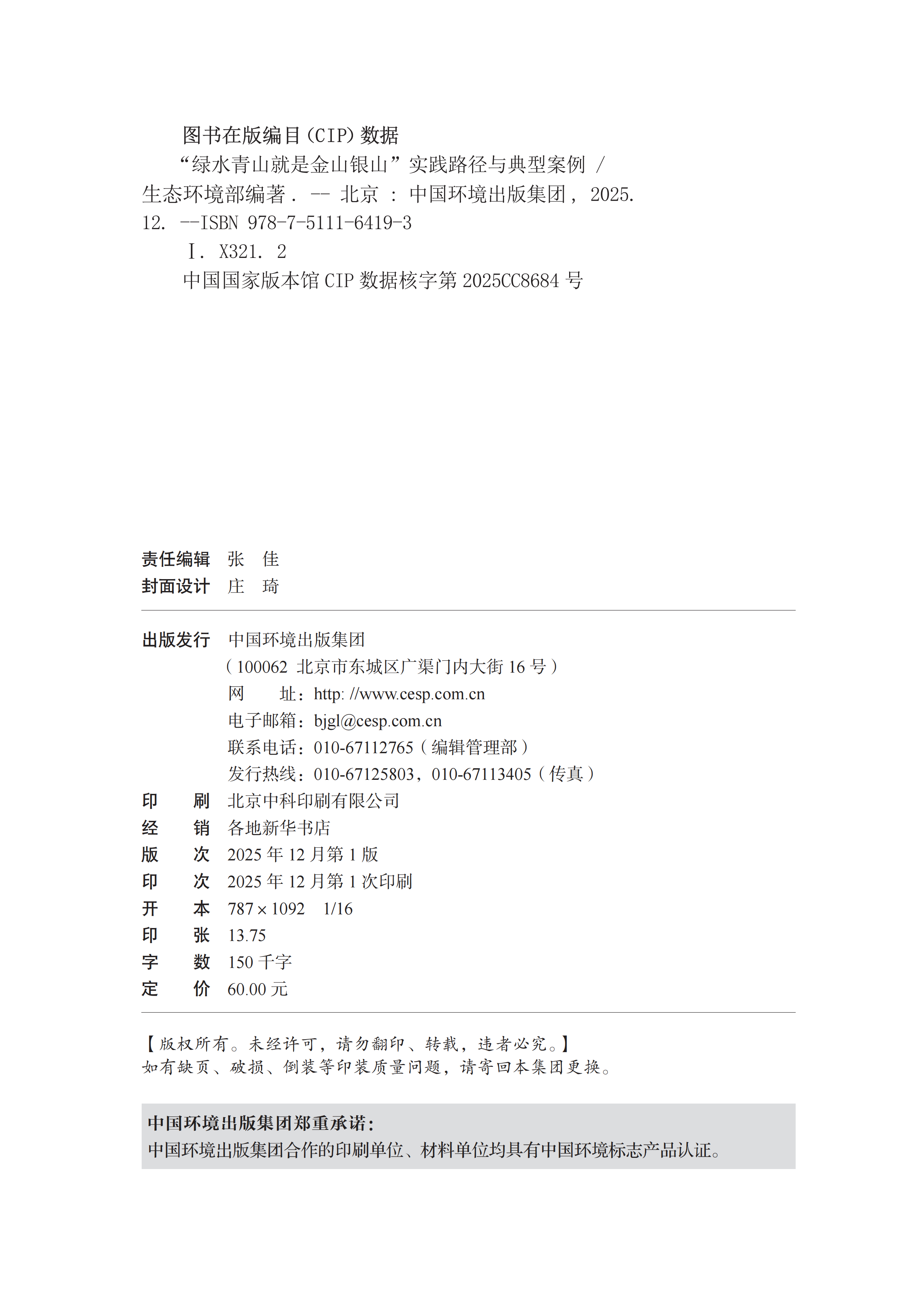2025年是“绿水青山就是金山银山”理念提出20周年。为更好地推动各地探索“绿水青山就是金山银山”转化路径、完善落实“绿水青山就是金山银山”理念的体制机制,生态环境部组织编制《“绿水青山就是金山银山”实践路径与典型案例》一书,现已由中国环境出版集团正式出版发行。