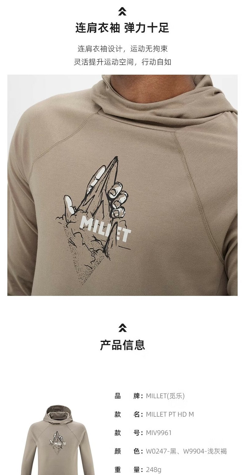 MILLET男款长袖连帽卫衣 MIV9961 MILLET PT HD M