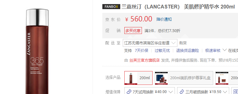 这款爽肤水在丝芙兰是卖500+,折扣后的价格也不会低于400元,