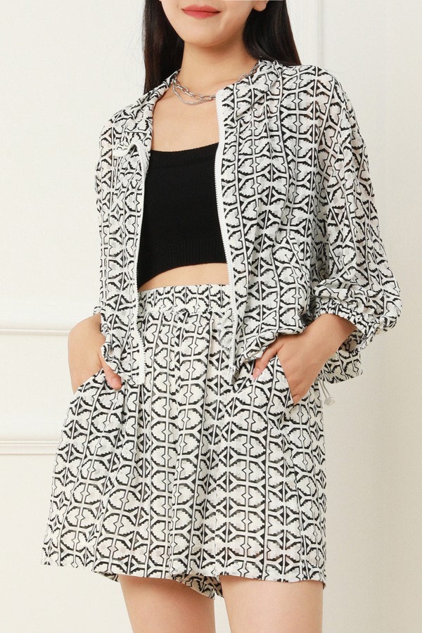 WHO KNOWS 黑白爱心印花休闲套装 12801