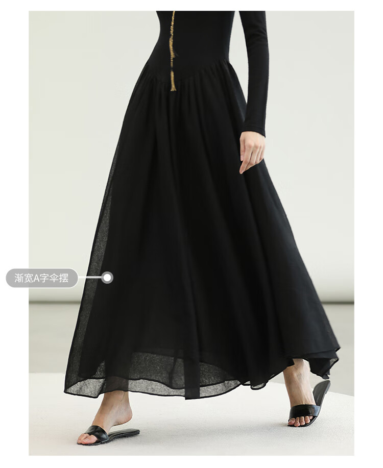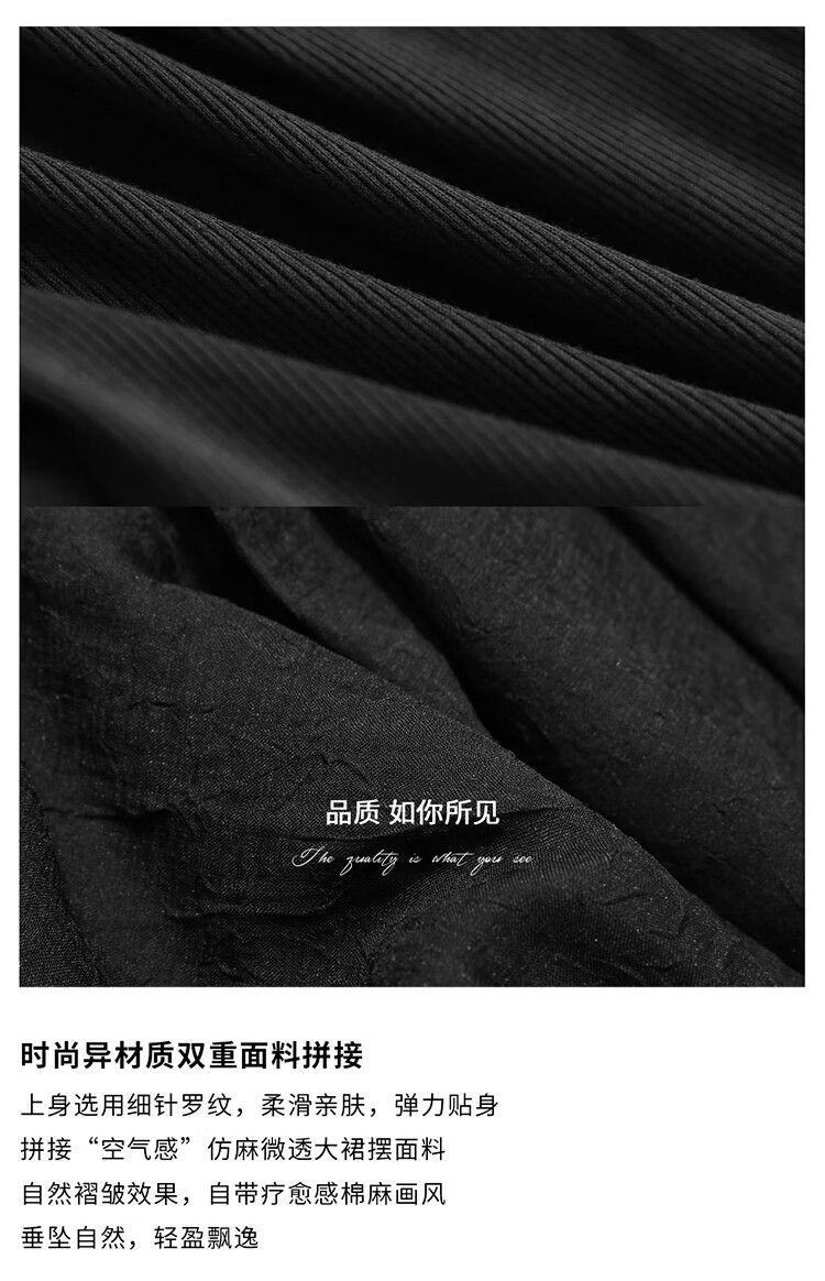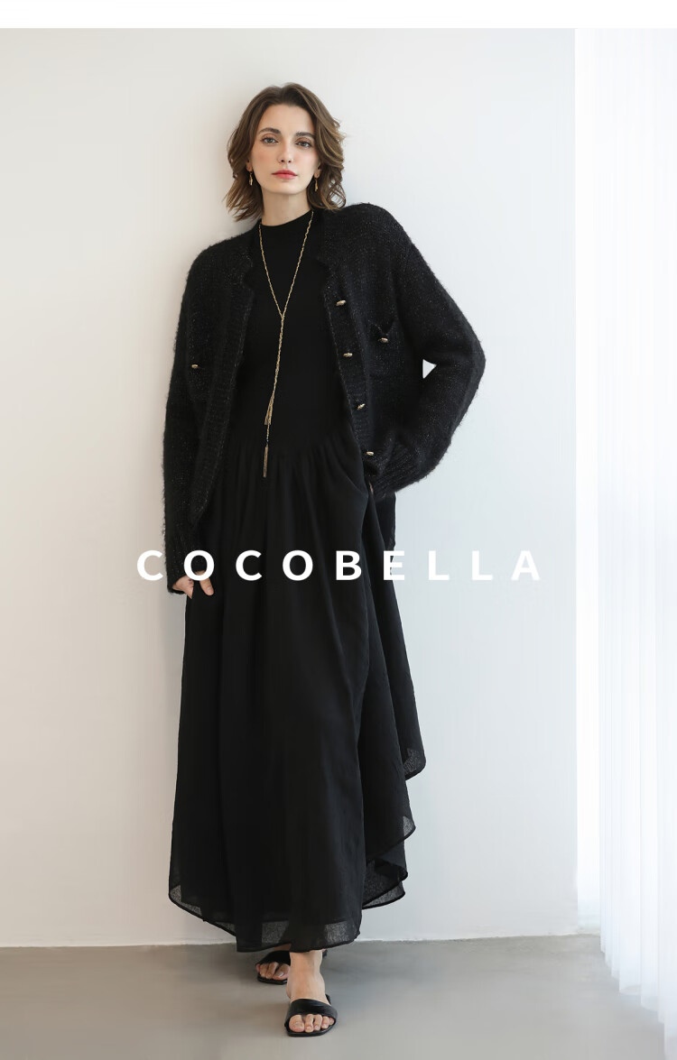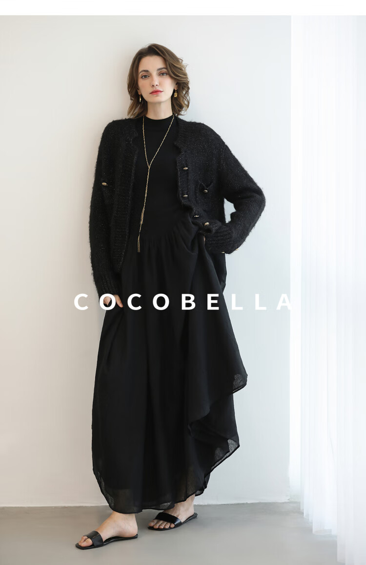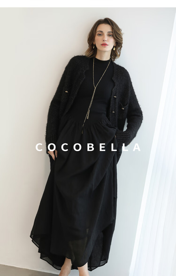 【限时特惠】COCOBELLA赫本风礼服半高领连衣裙小黑裙褶皱肌理大摆长裙FR0008