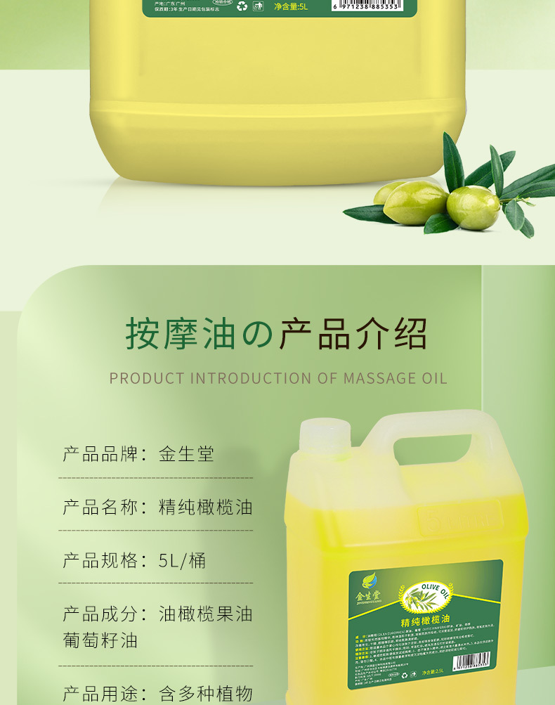 美容院SPA大桶橄榄精油BB油按摩油全身刮痧润肤油基础油身体开背