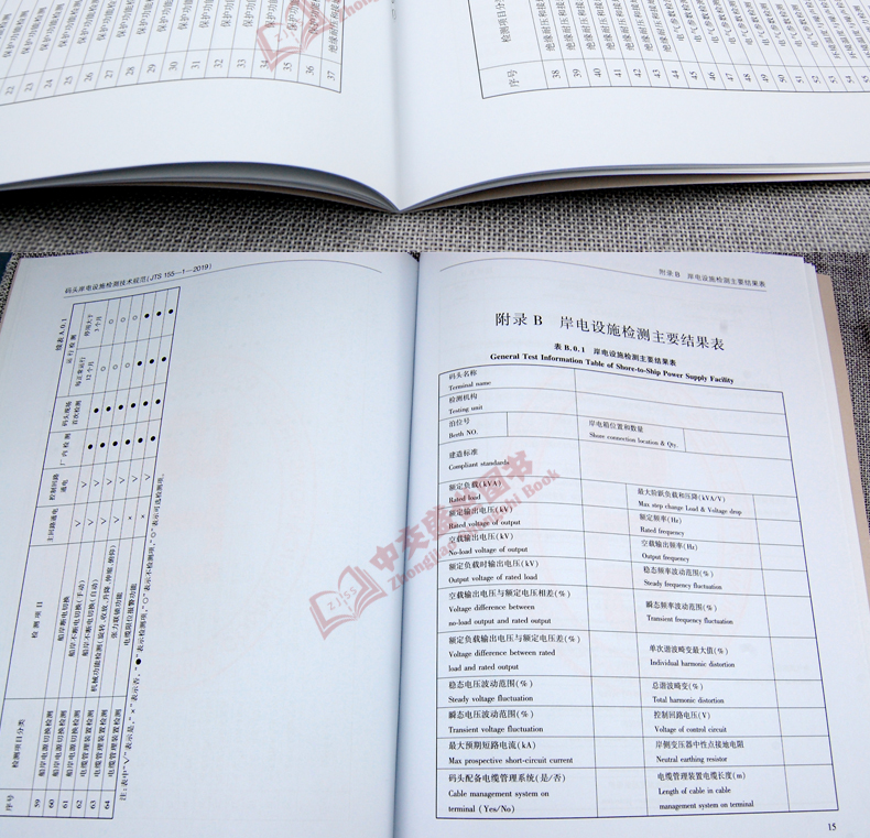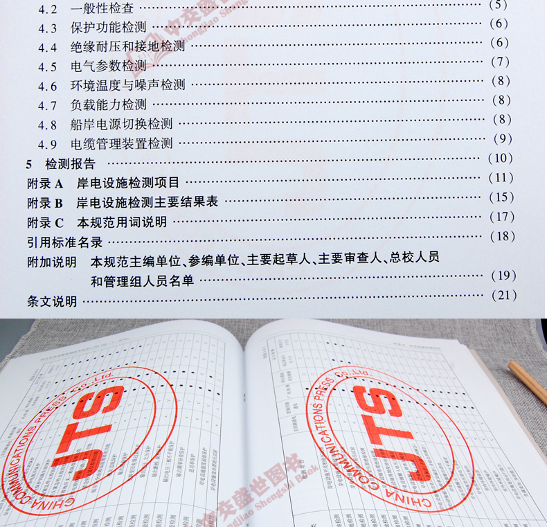 《码头船舶岸电设施检测技术规范》是交通运输部水运局组织交通运输部水运科学研究院等单位编写的码头船舶岸电设施检测的技术规范。本规范共分5章和3个附录,并附条文说明,主要内容包括一般性检查、保护功能检测、绝缘耐压和接地检测、电气参数检测等。