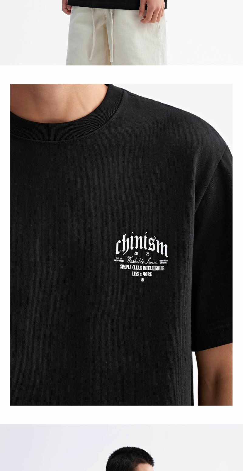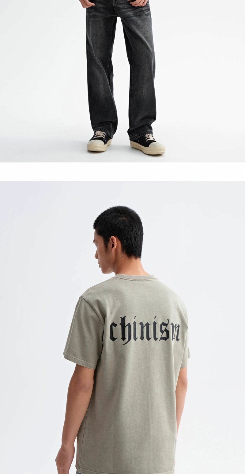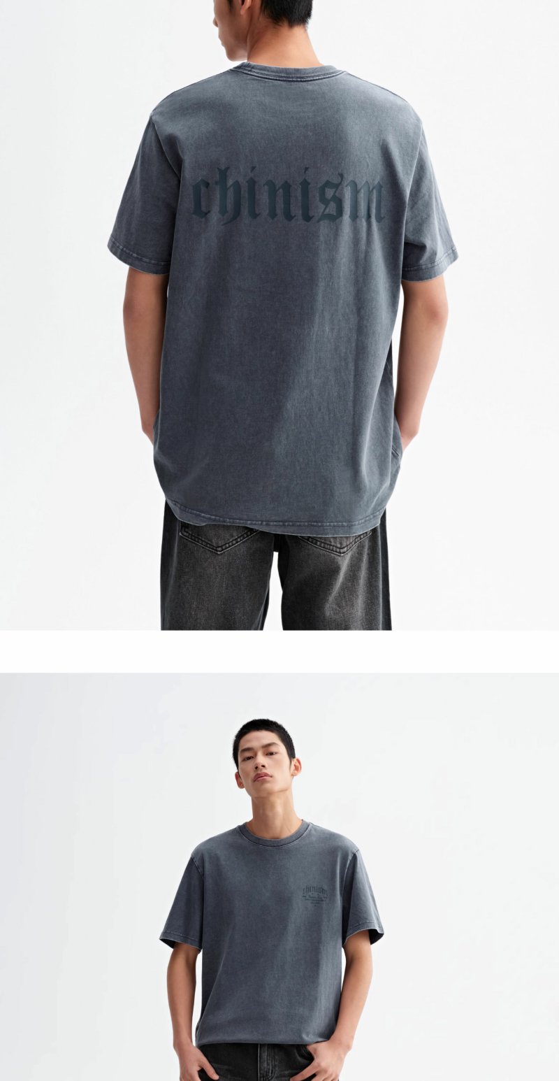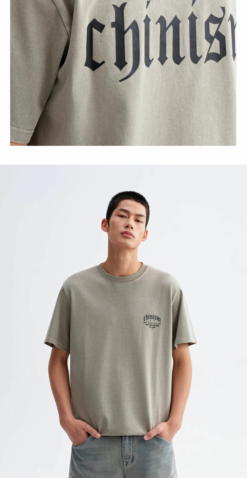CHINISM赤尘 水洗做旧logo印花短袖T恤男复古夏季宽松五分袖上衣