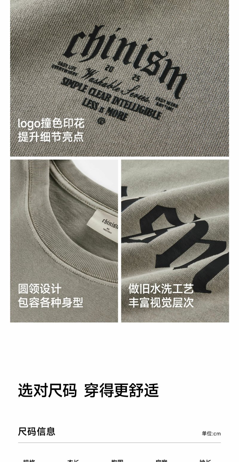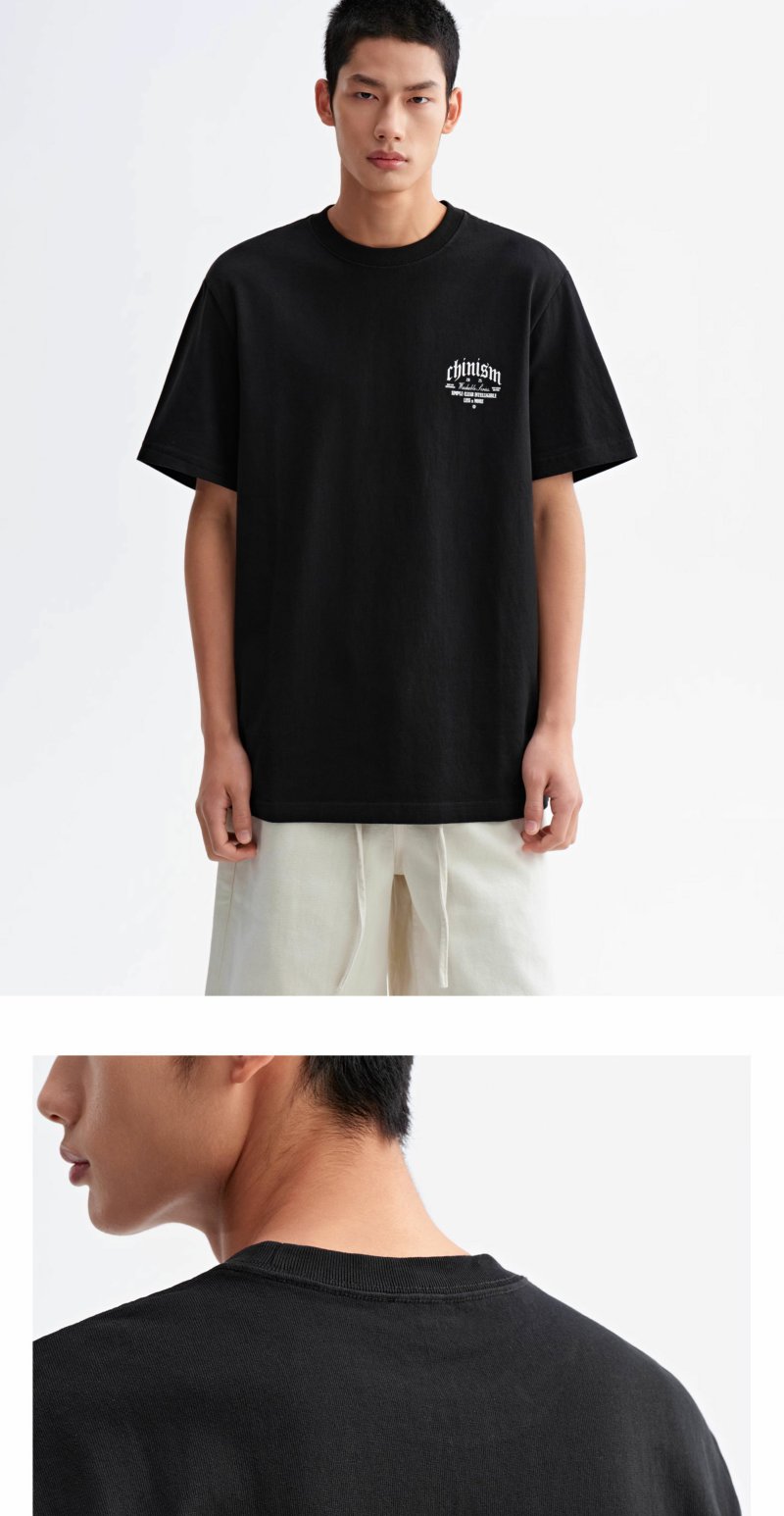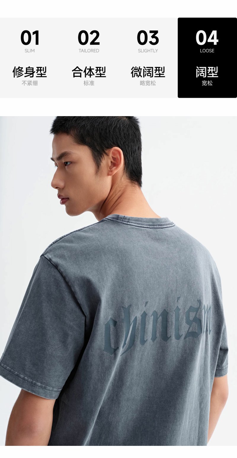 CHINISM赤尘 水洗做旧logo印花短袖T恤男复古夏季宽松五分袖上衣