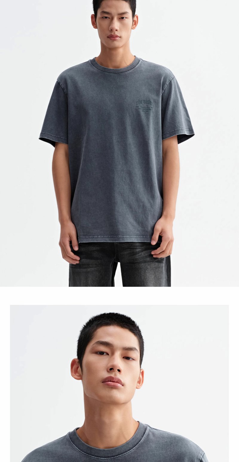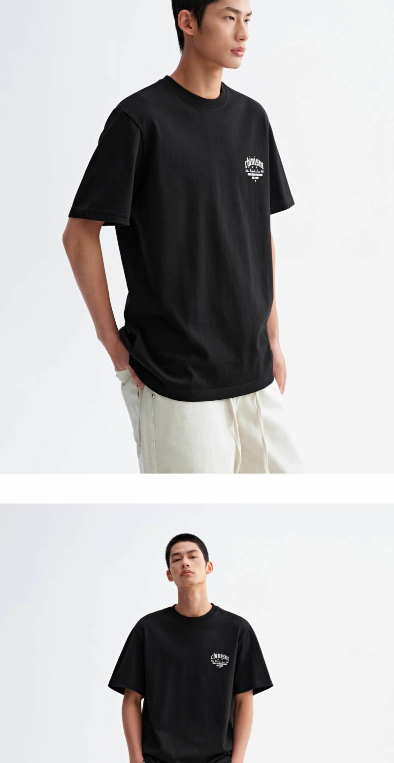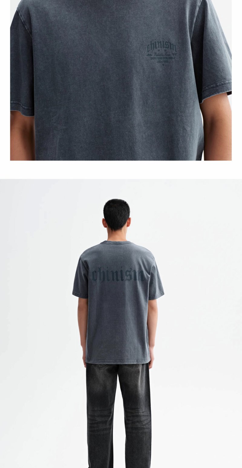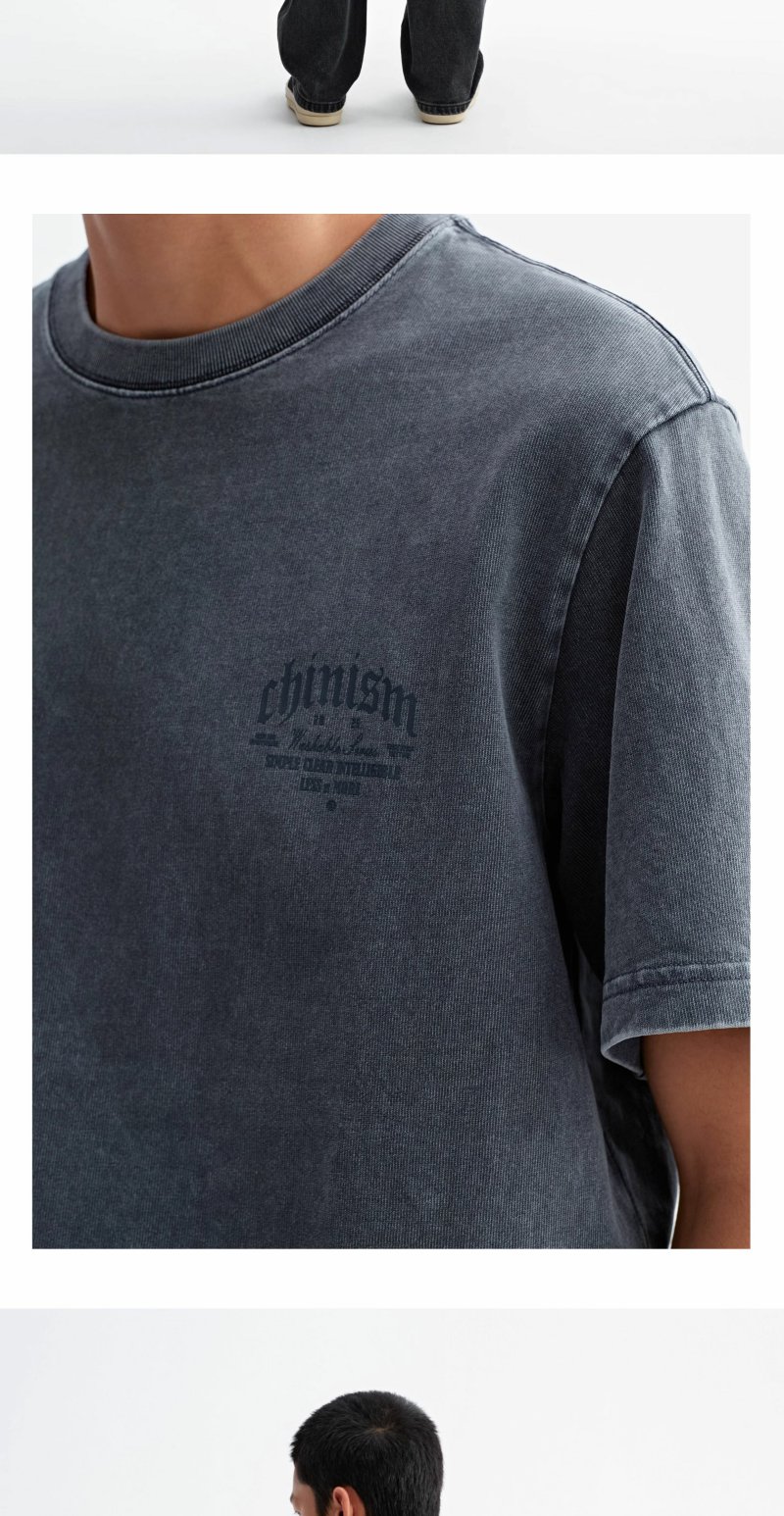 CHINISM赤尘 水洗做旧logo印花短袖T恤男复古夏季宽松五分袖上衣