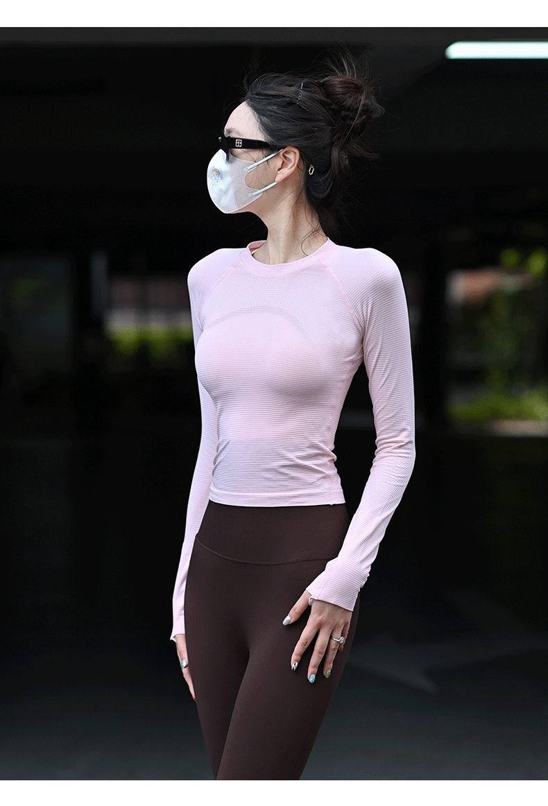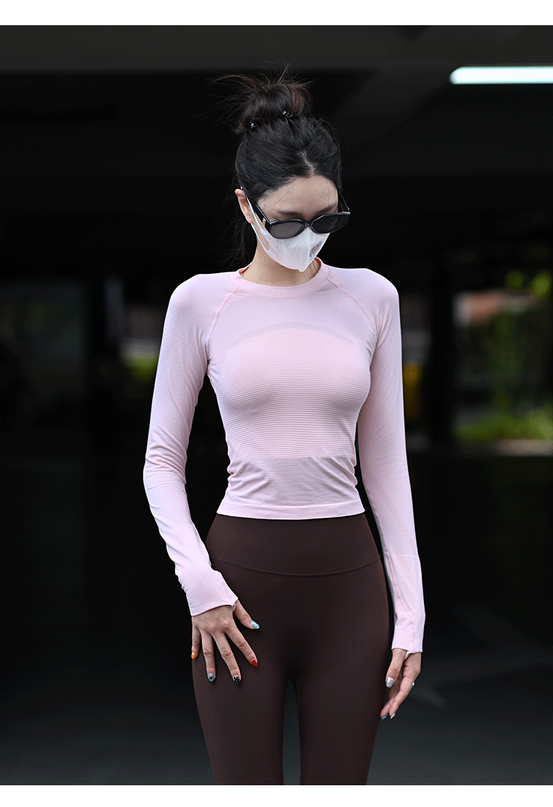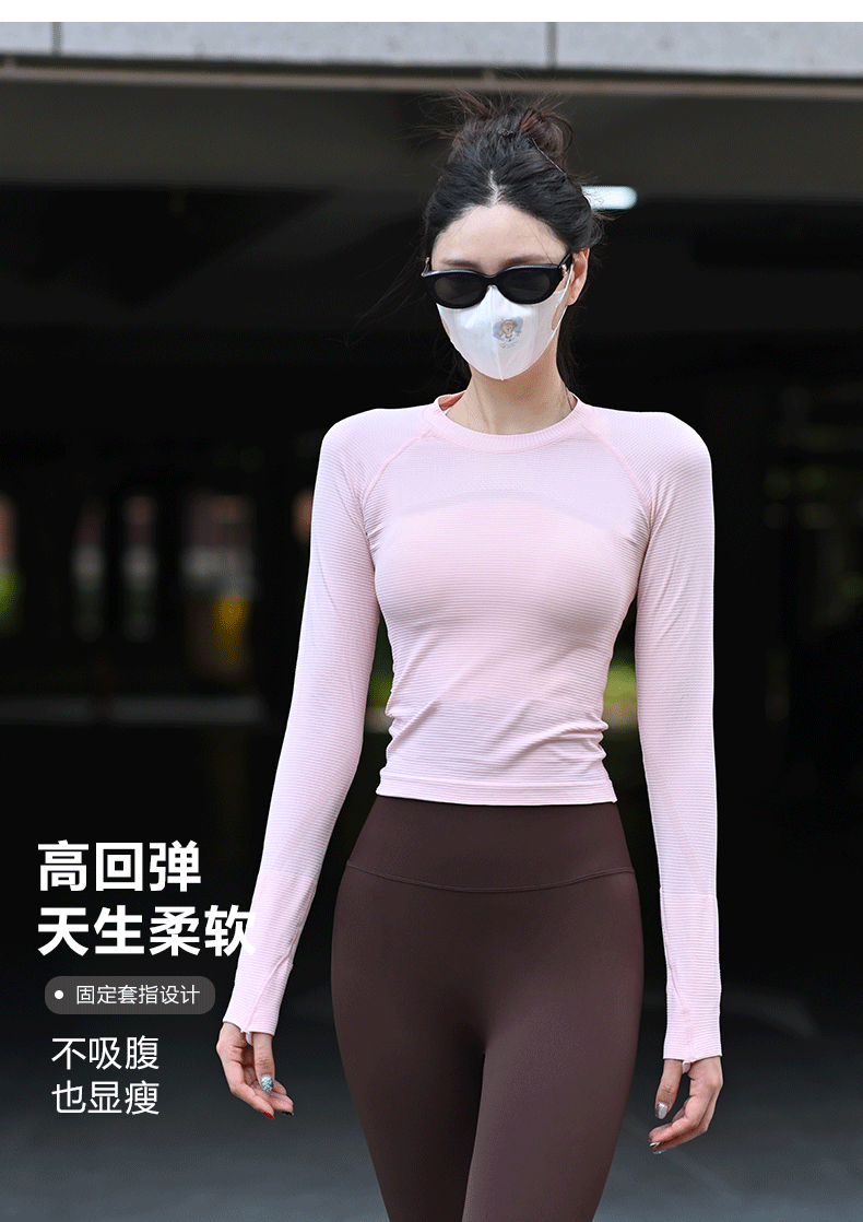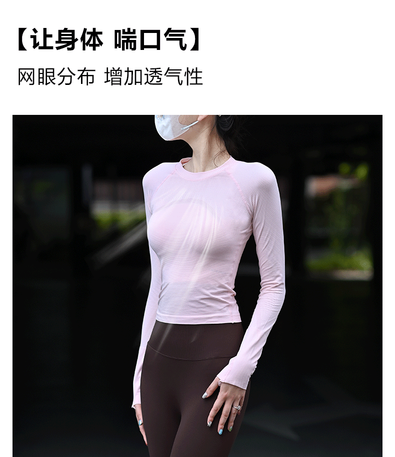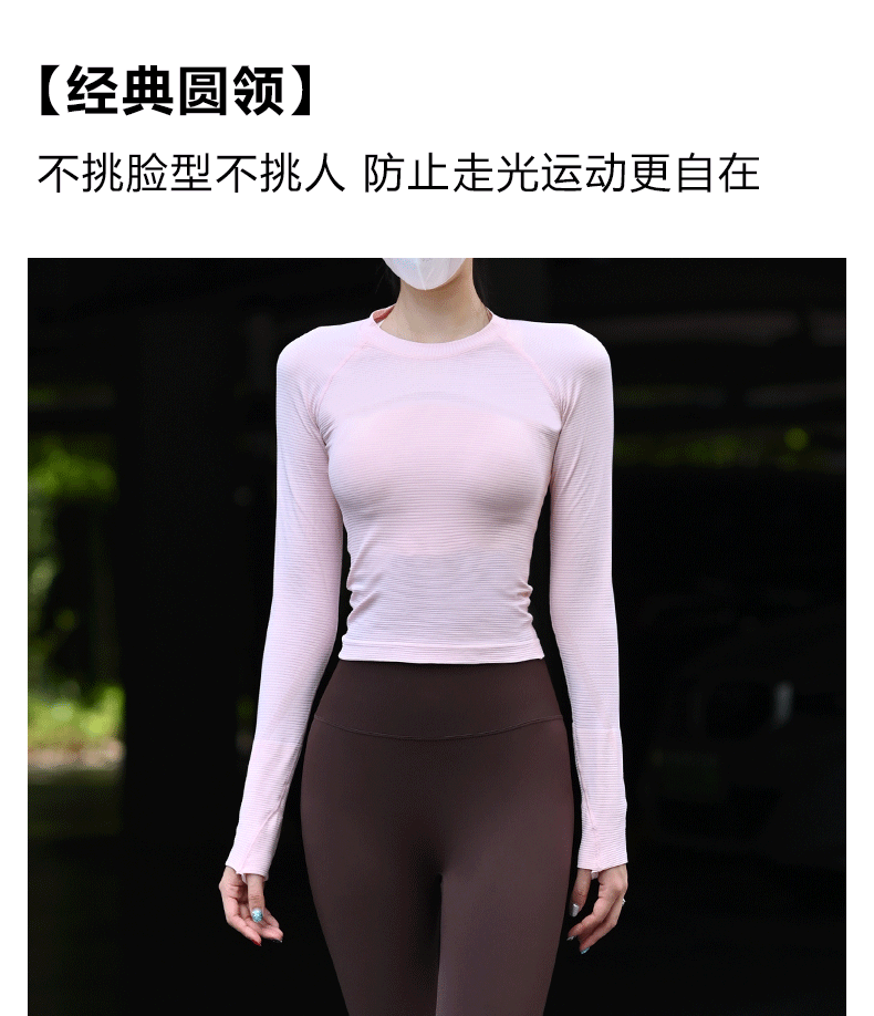 Beemen无缝针织瑜伽服女上衣速干户外健身打底运动长袖