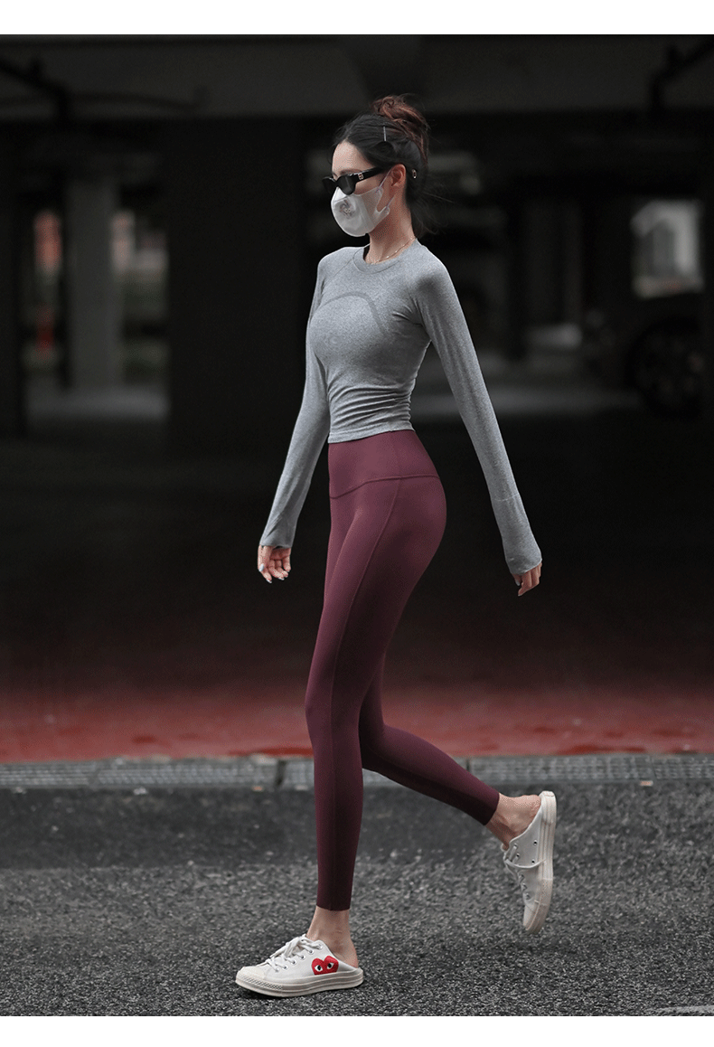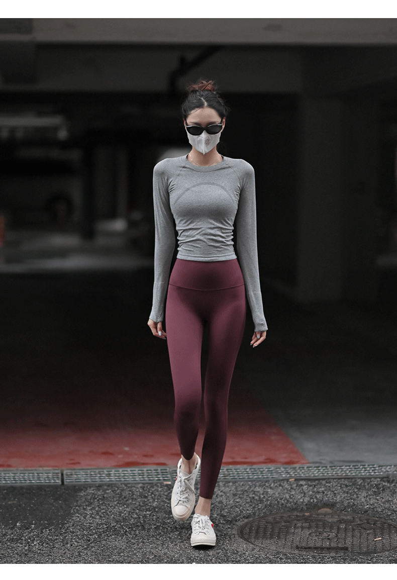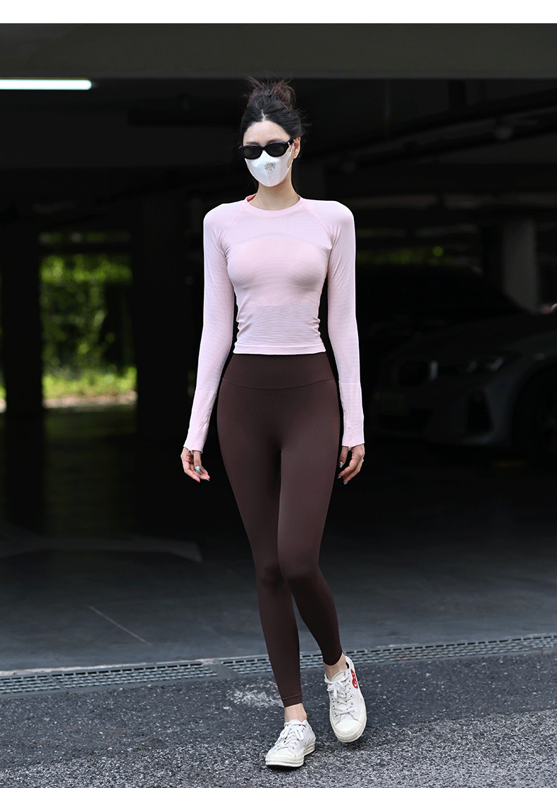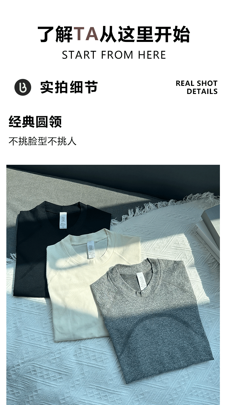 Beemen无缝针织瑜伽服女上衣速干户外健身打底运动长袖