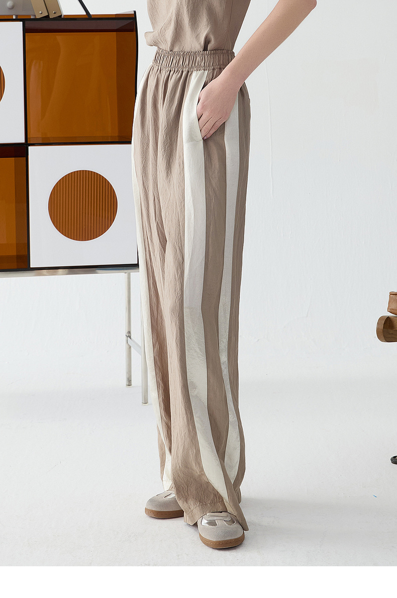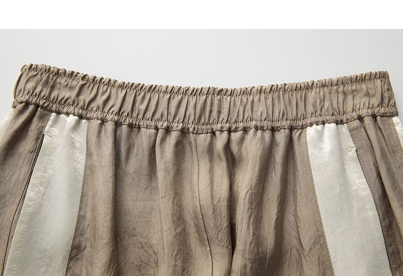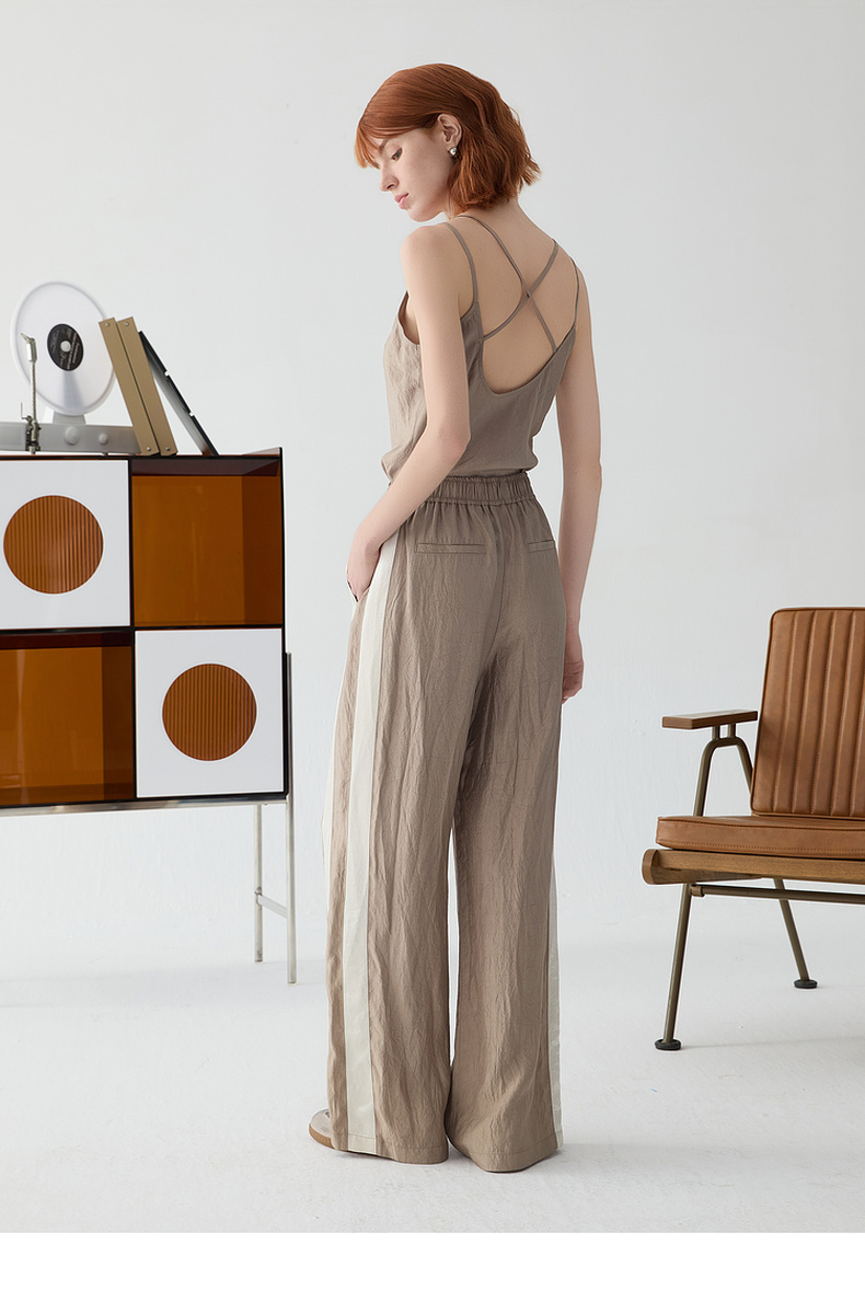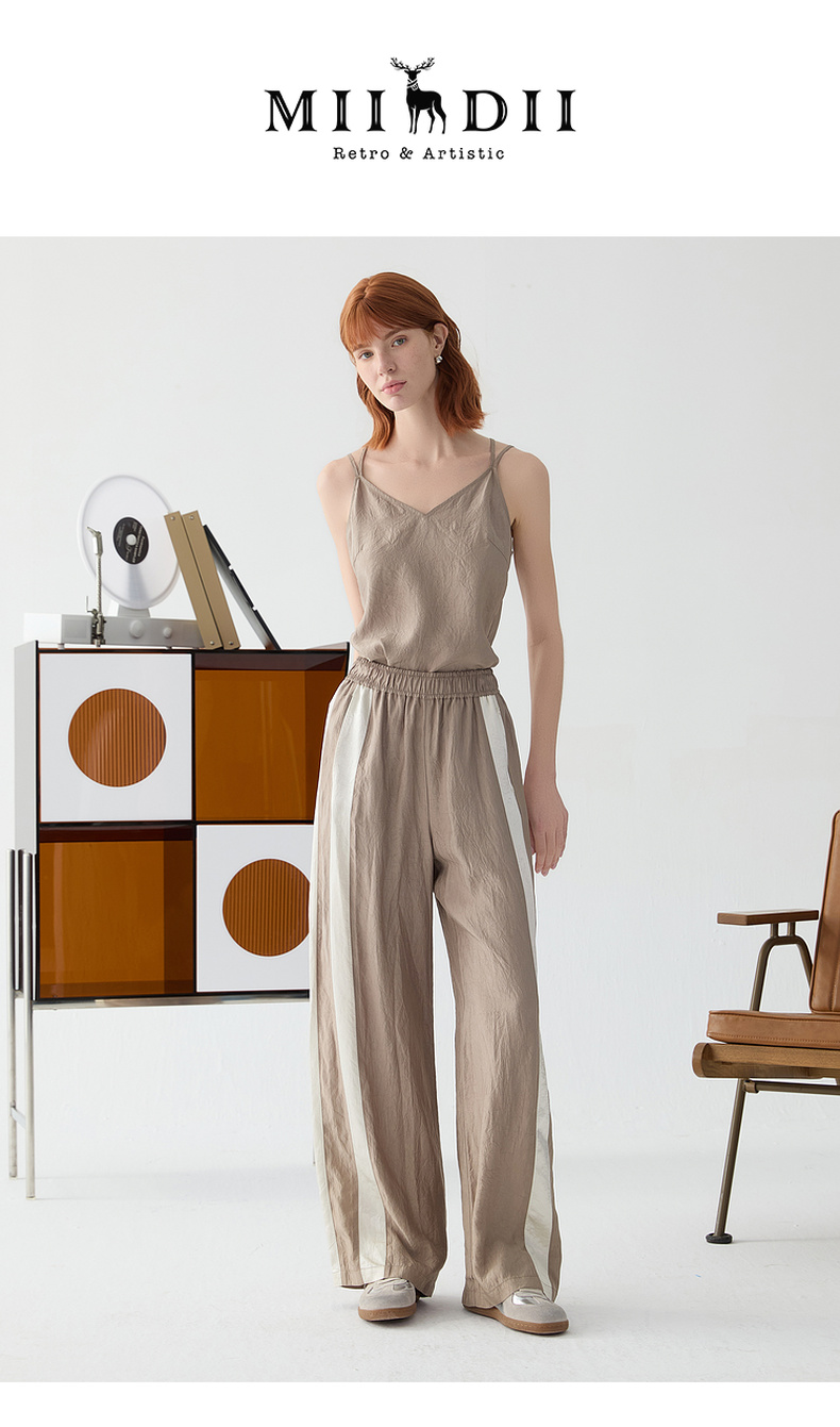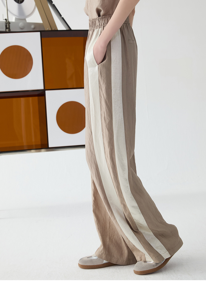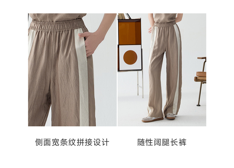 谜底休闲裤阔腿裤女2025春季新品休闲风松紧腰拼接长裤251GK0094