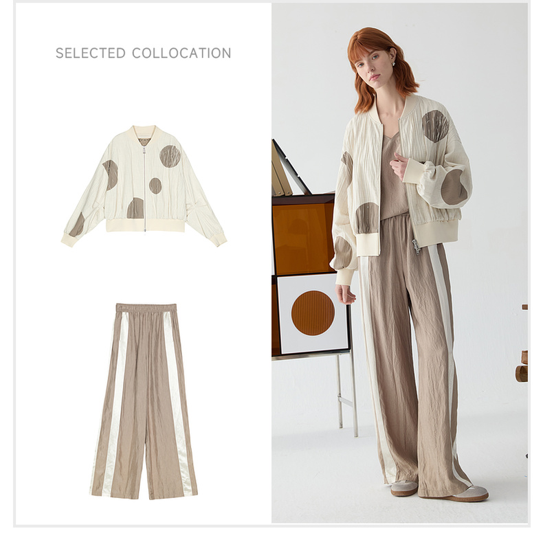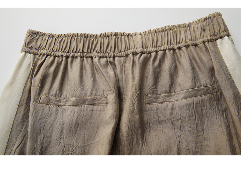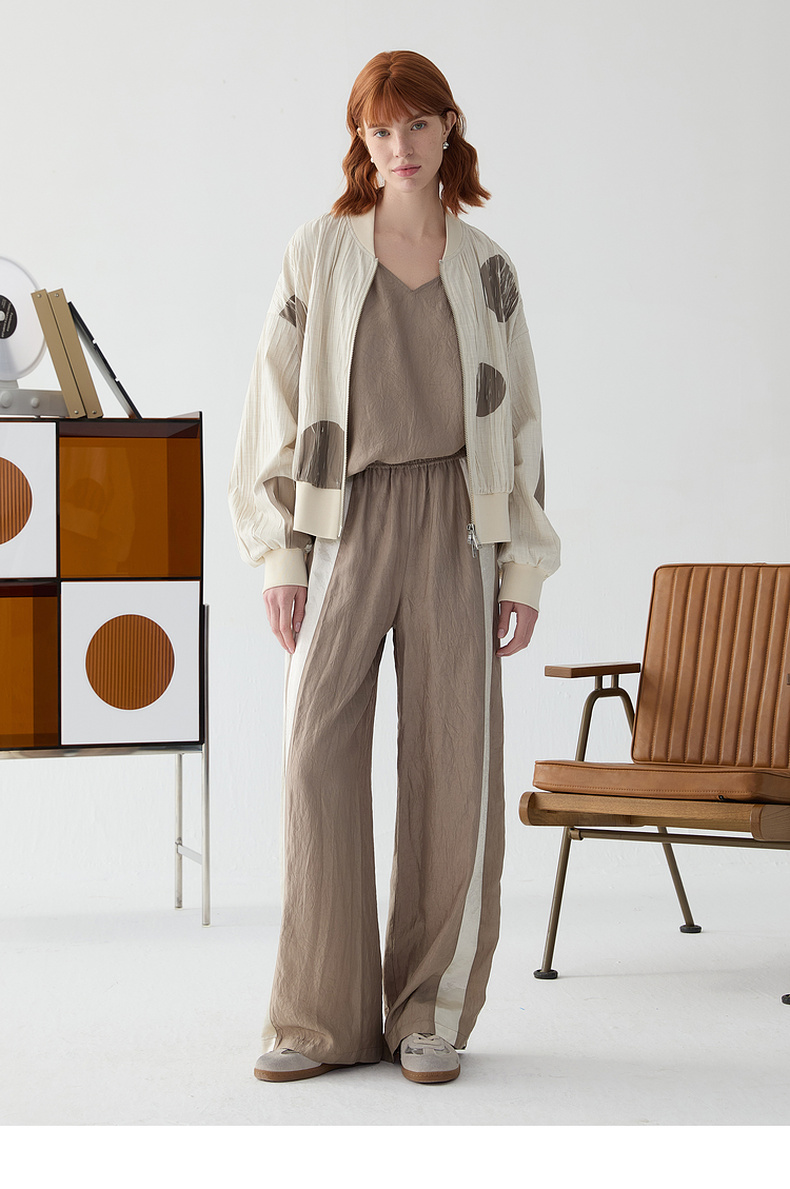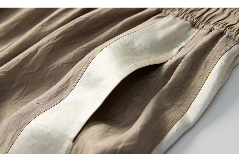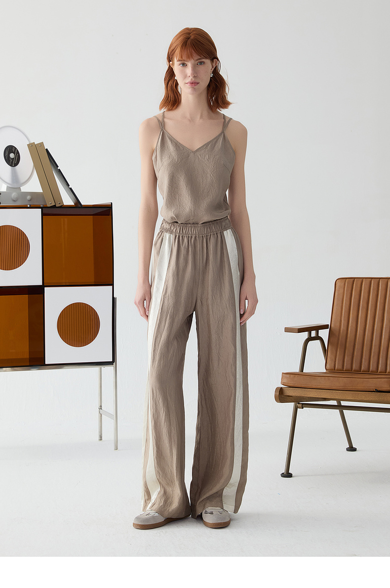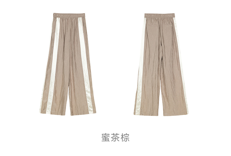 谜底休闲裤阔腿裤女2025春季新品休闲风松紧腰拼接长裤251GK0094
