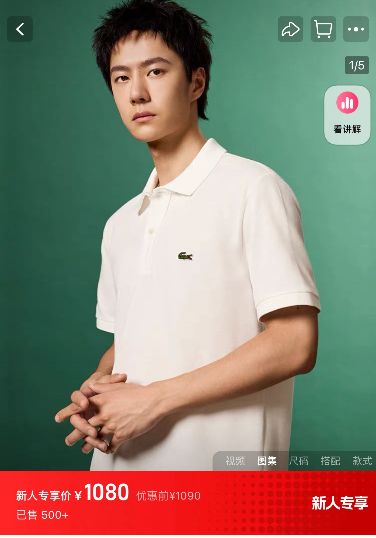 98元包邮, 王一博同款,LACOST* 男士经典Polo衫