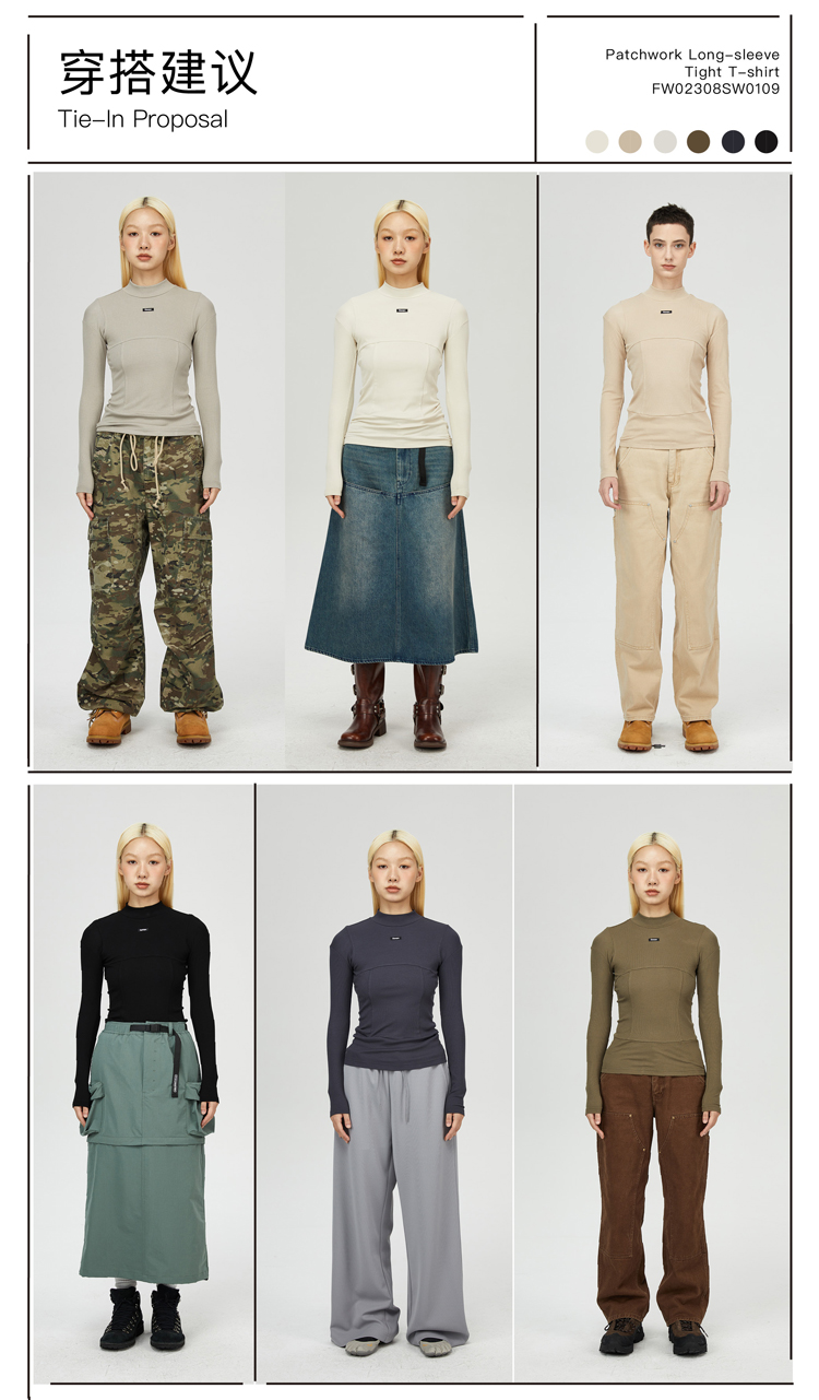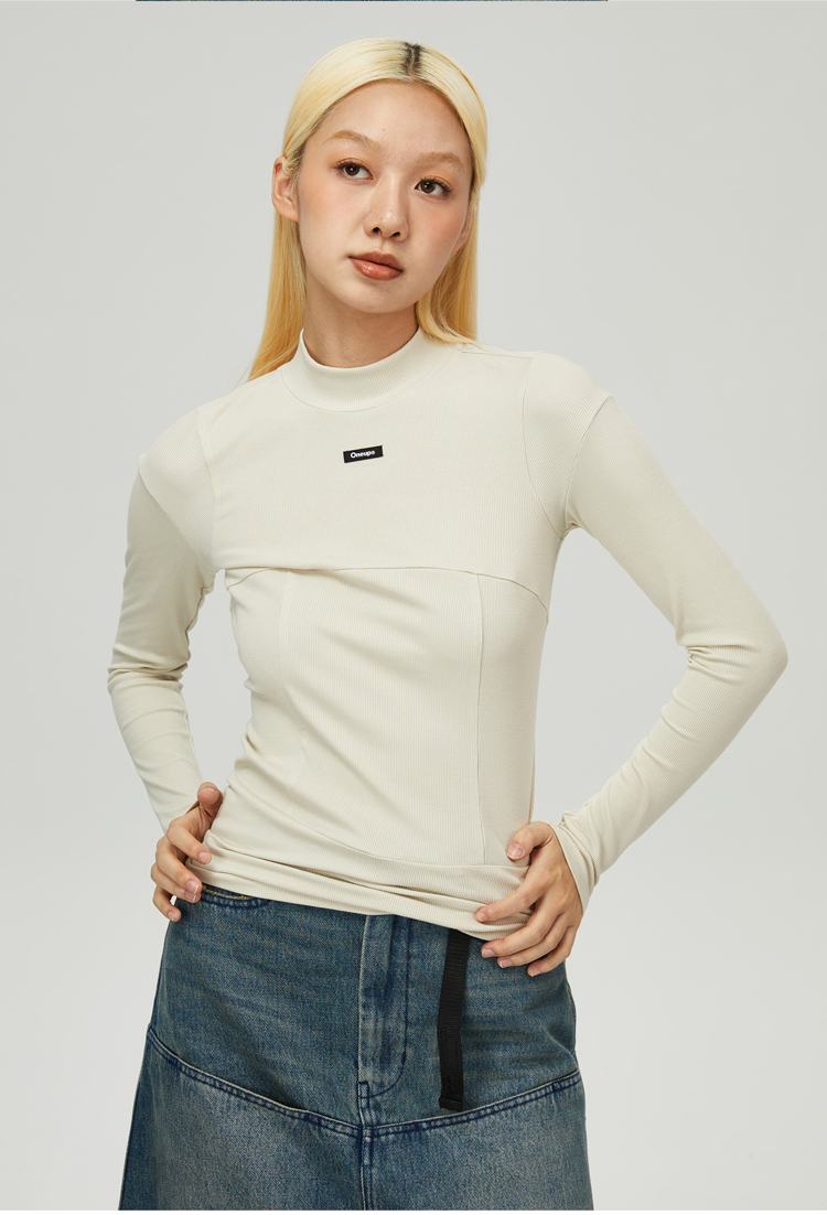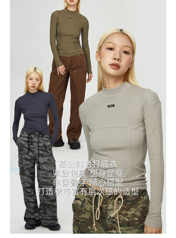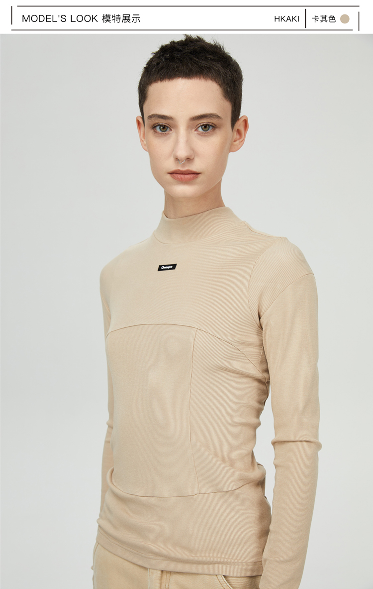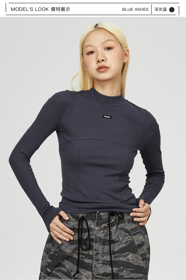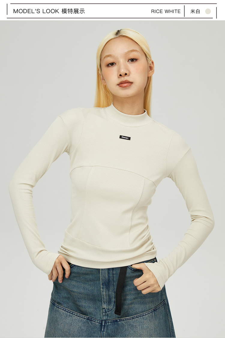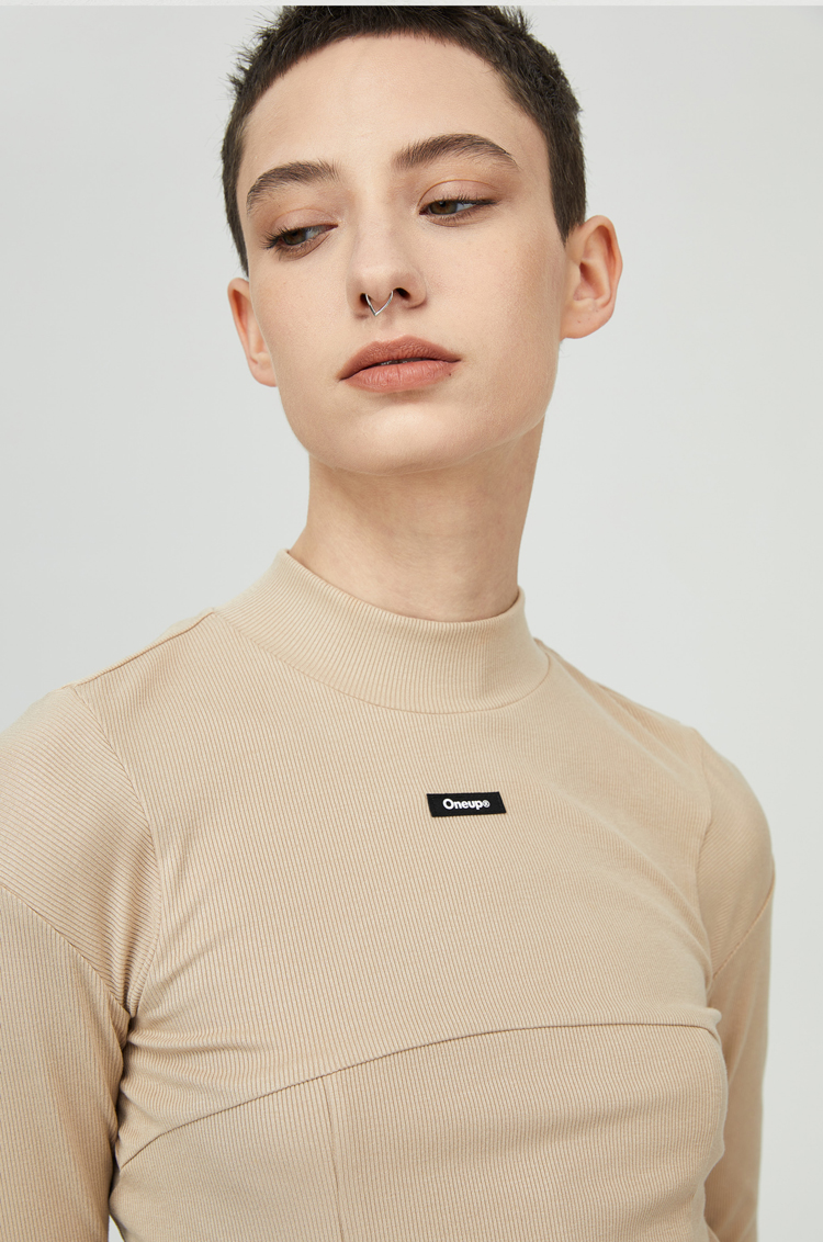 oneup纯色紧身拼接长袖