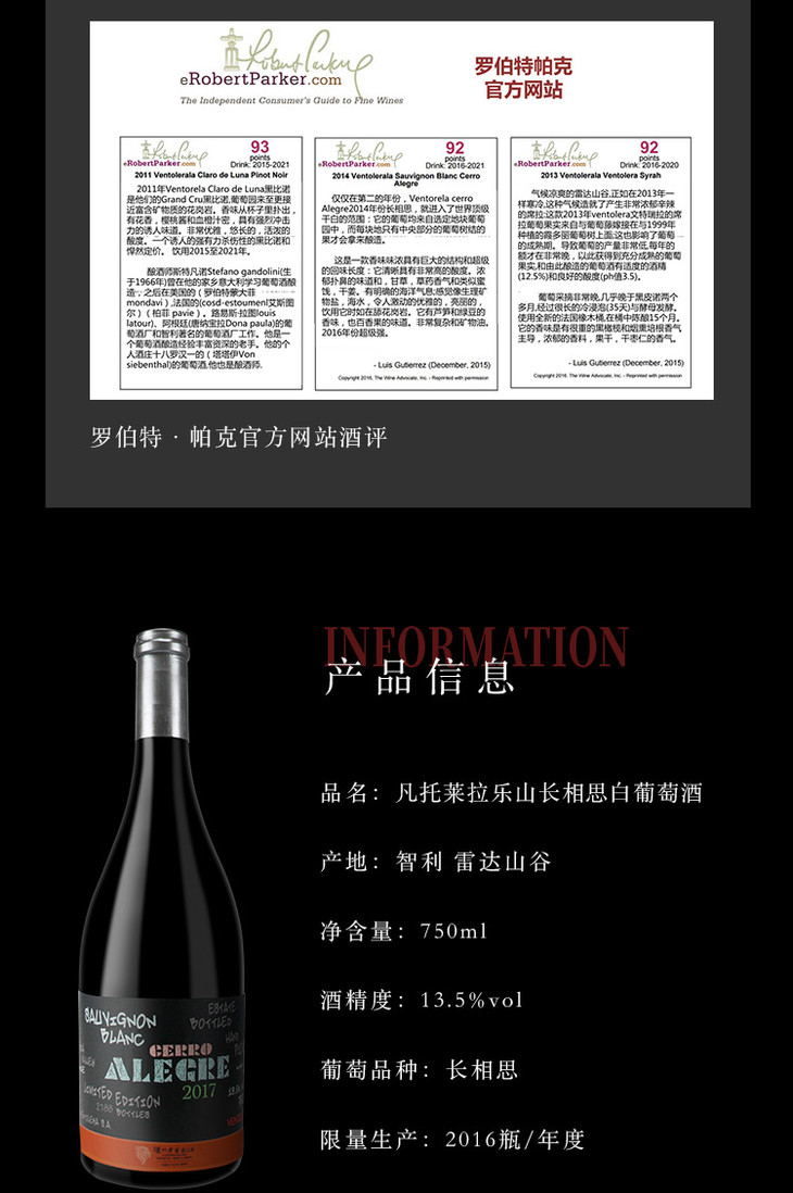 不可销售 凡托莱拉乐山长相思白葡萄酒 750ml 泸州老窖官方旗舰店