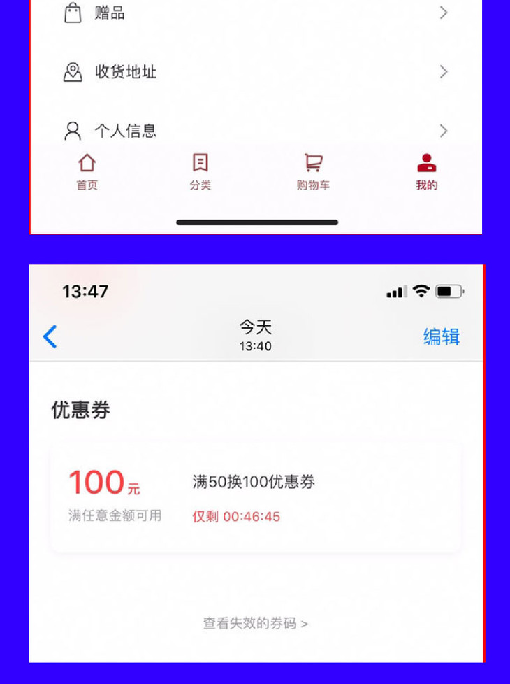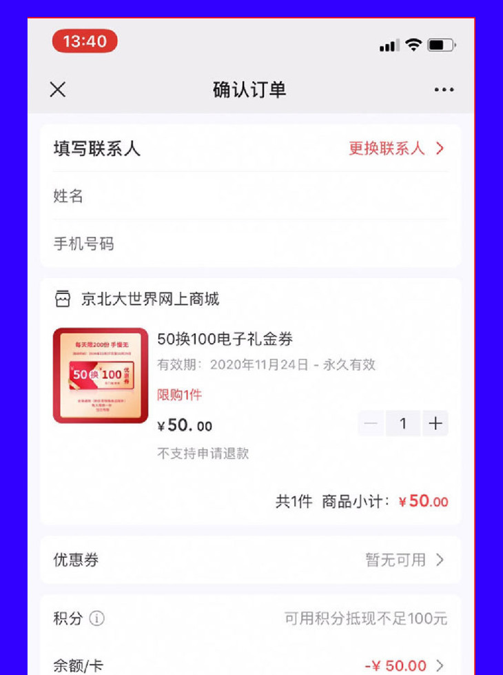 活动内容:顾客在活动当天,可在线上商城用50元换取100元电子礼金