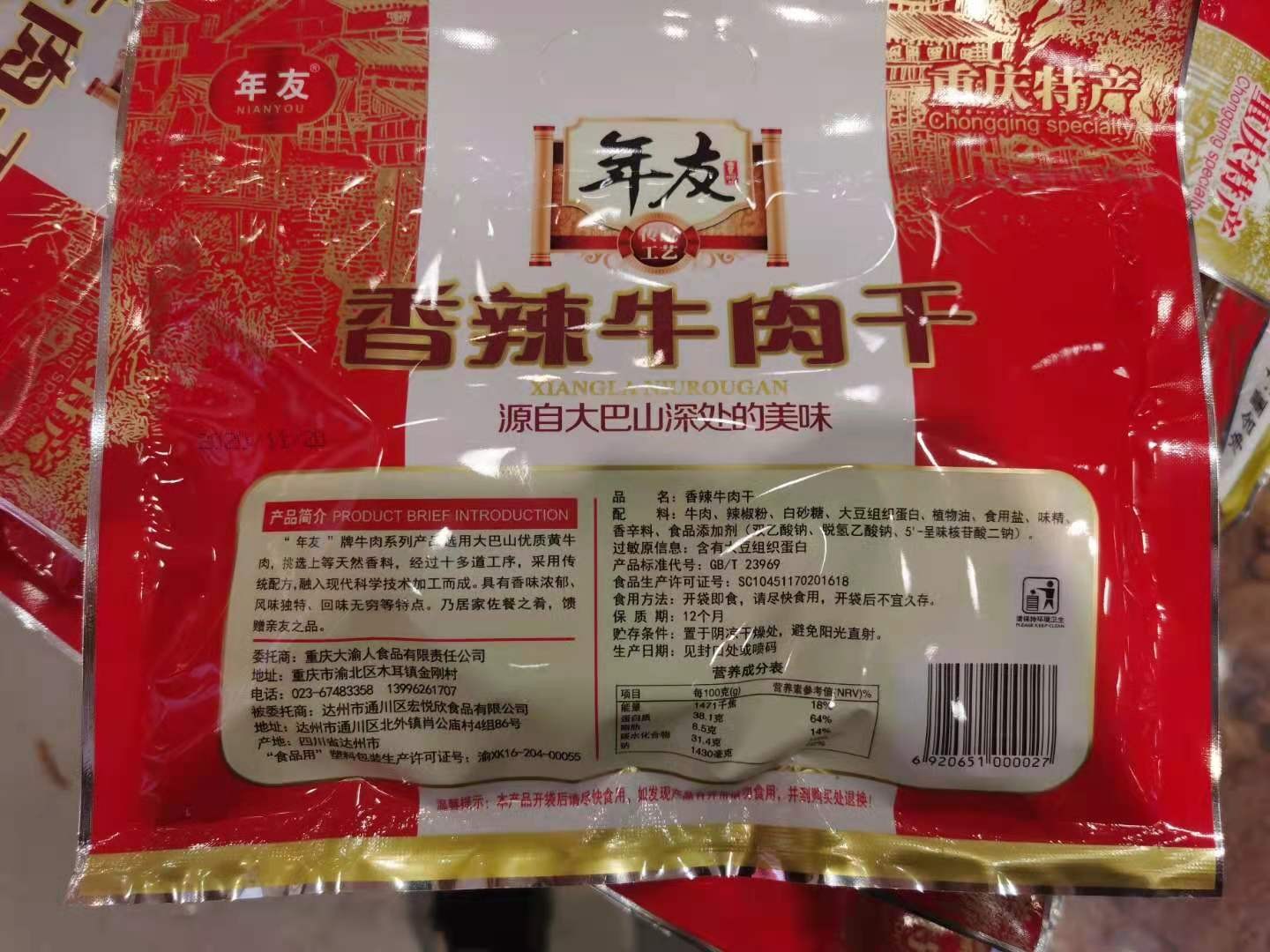 重庆特产【年友牌牛肉干168g】香辣味五香味美味零食