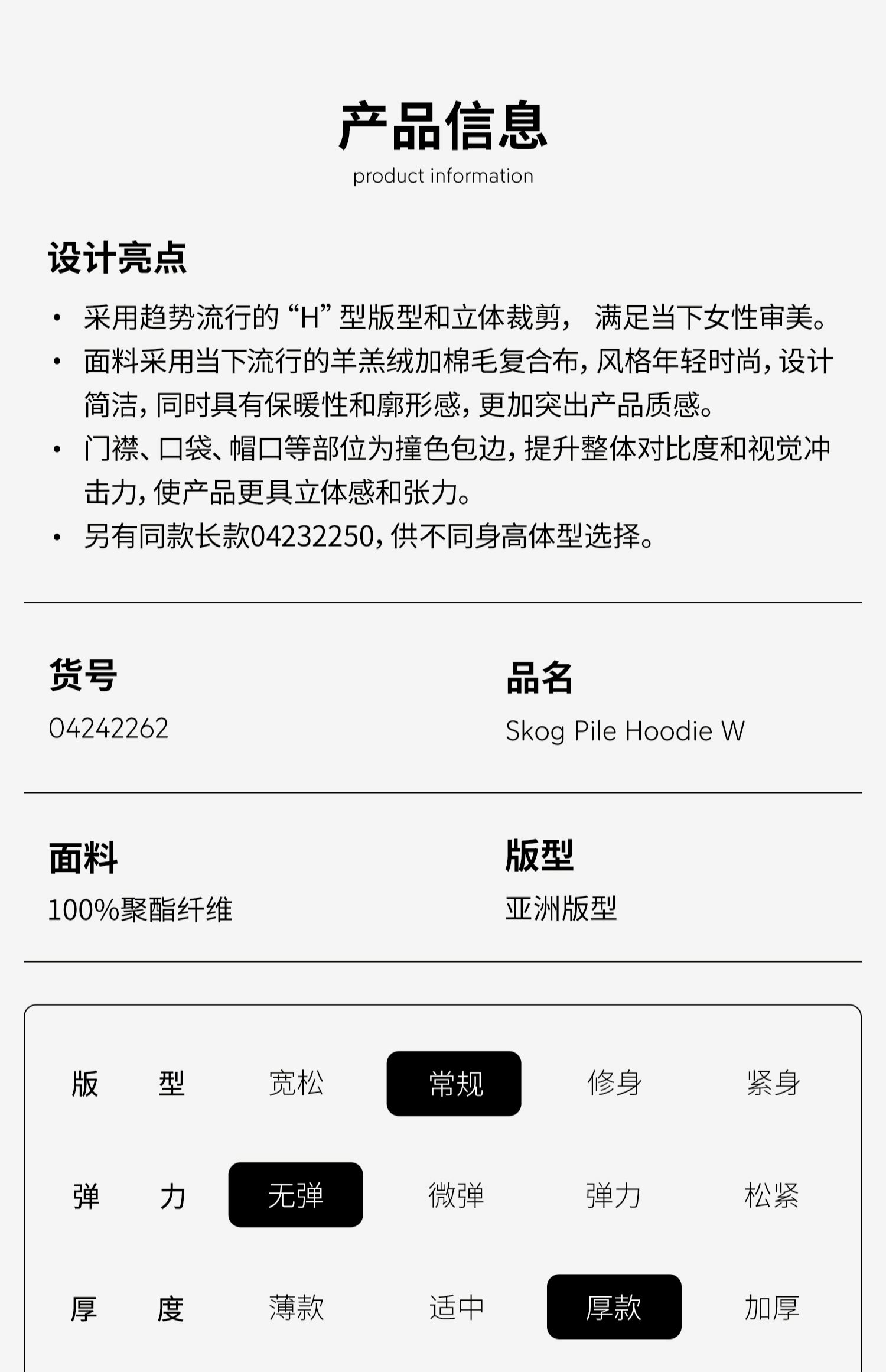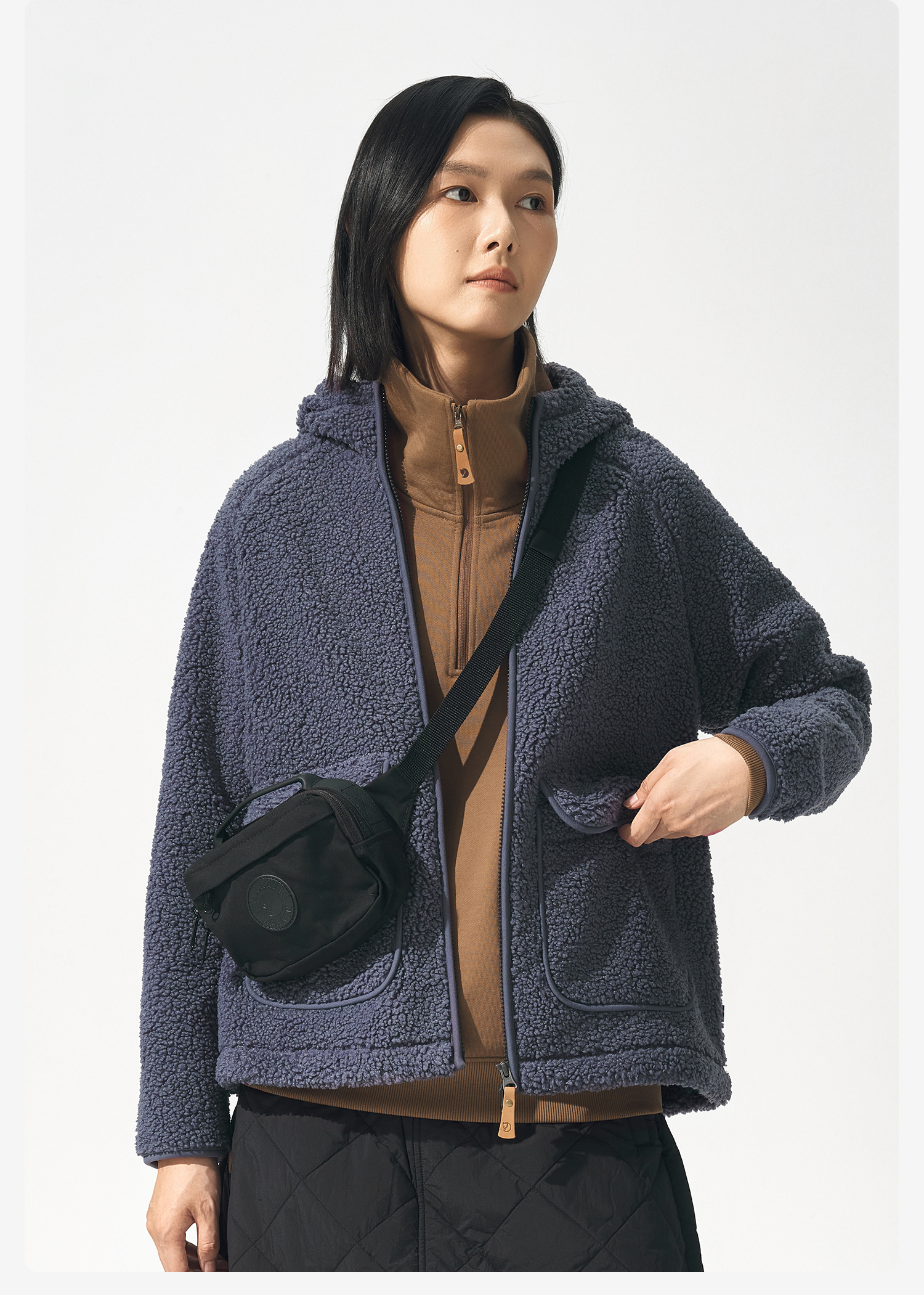 北极狐 女士连帽羊羔毛外套 2024秋冬 城市户外保暖夹克04242262